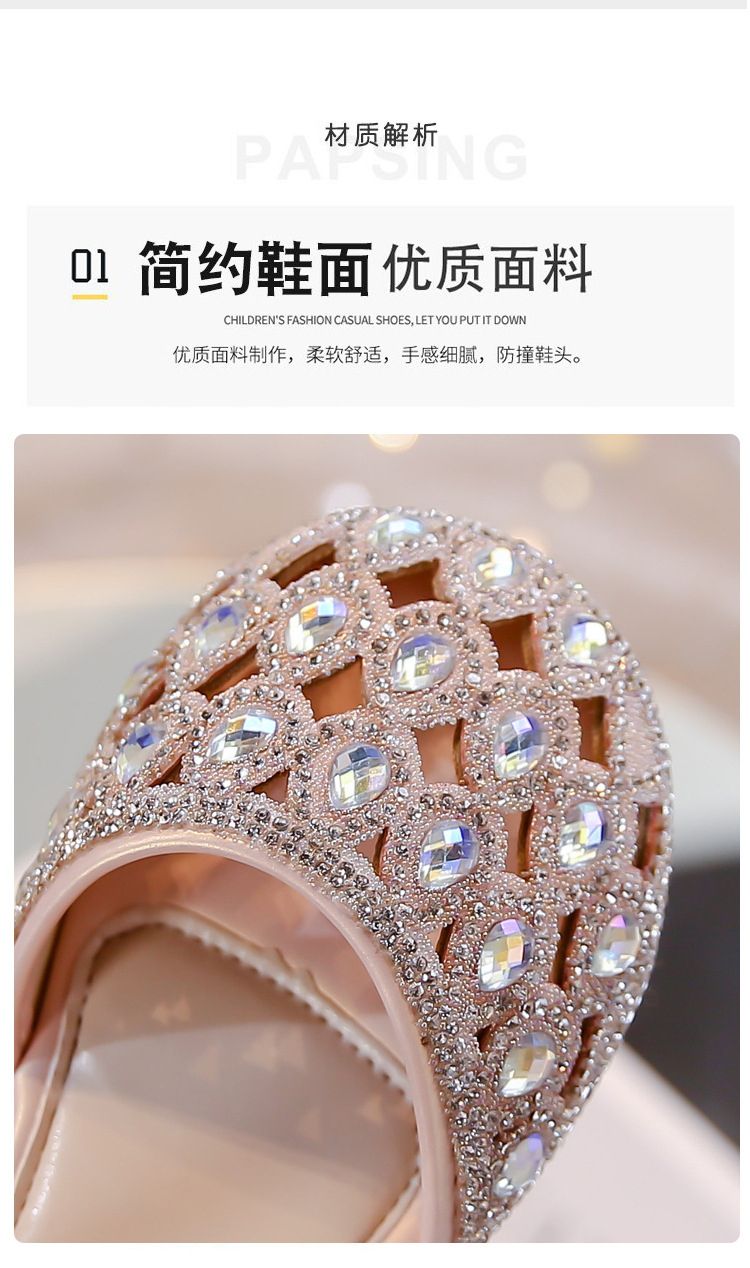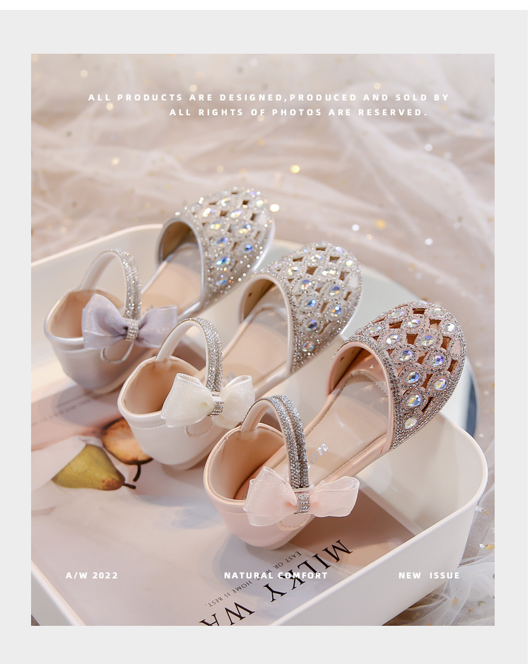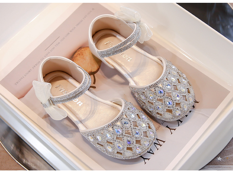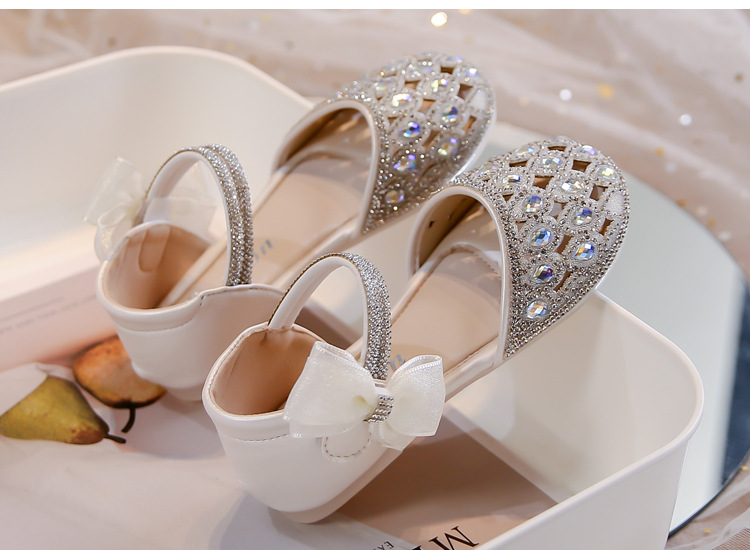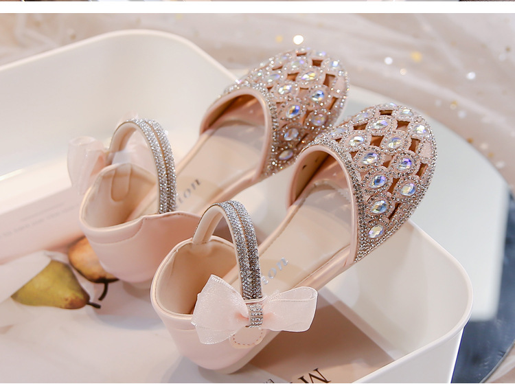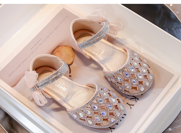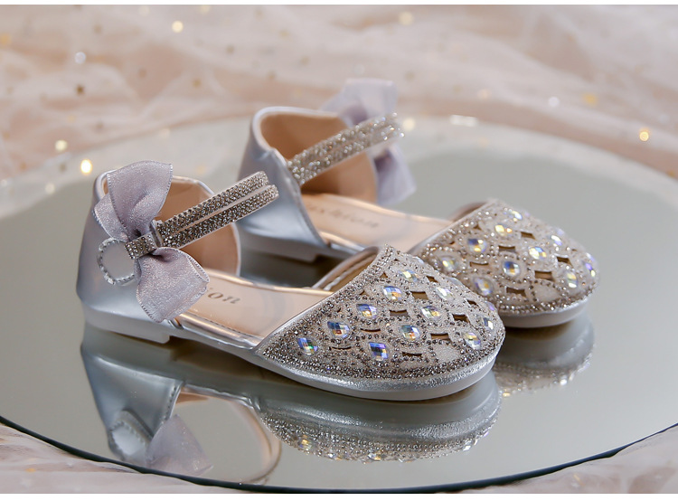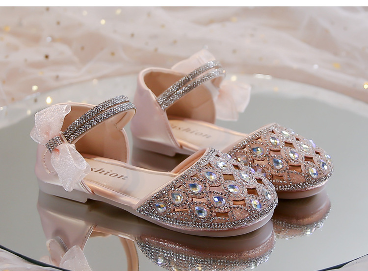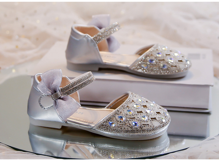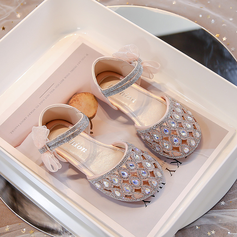 여아용 워터 다이아몬드 장식 공주 신발 2026년 여름 메쉬 리본 여아용 반샌들 크리스탈 공연 신발스토어 가기