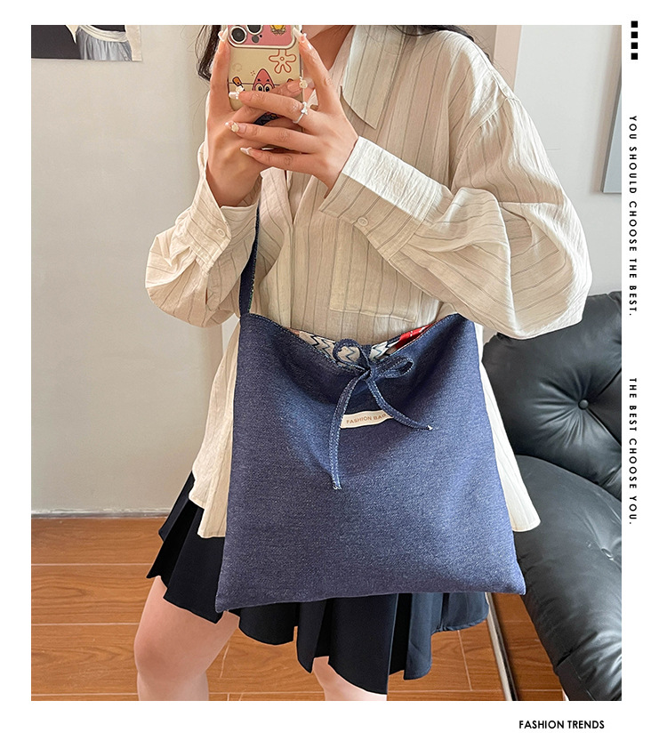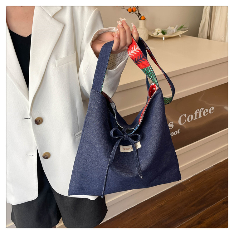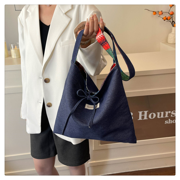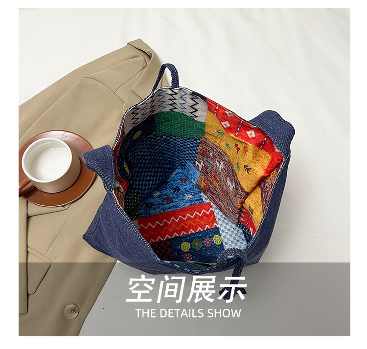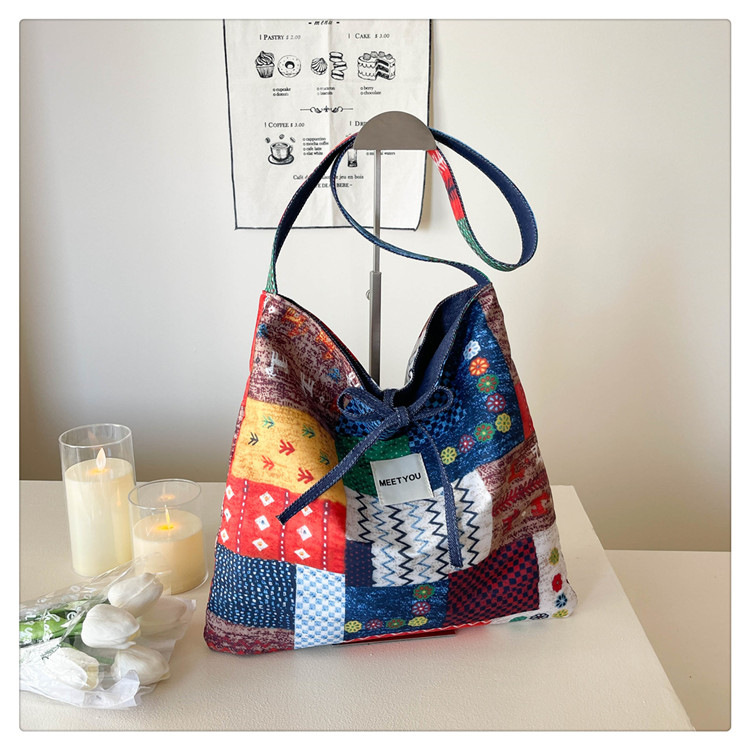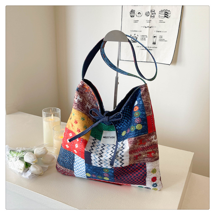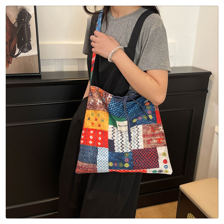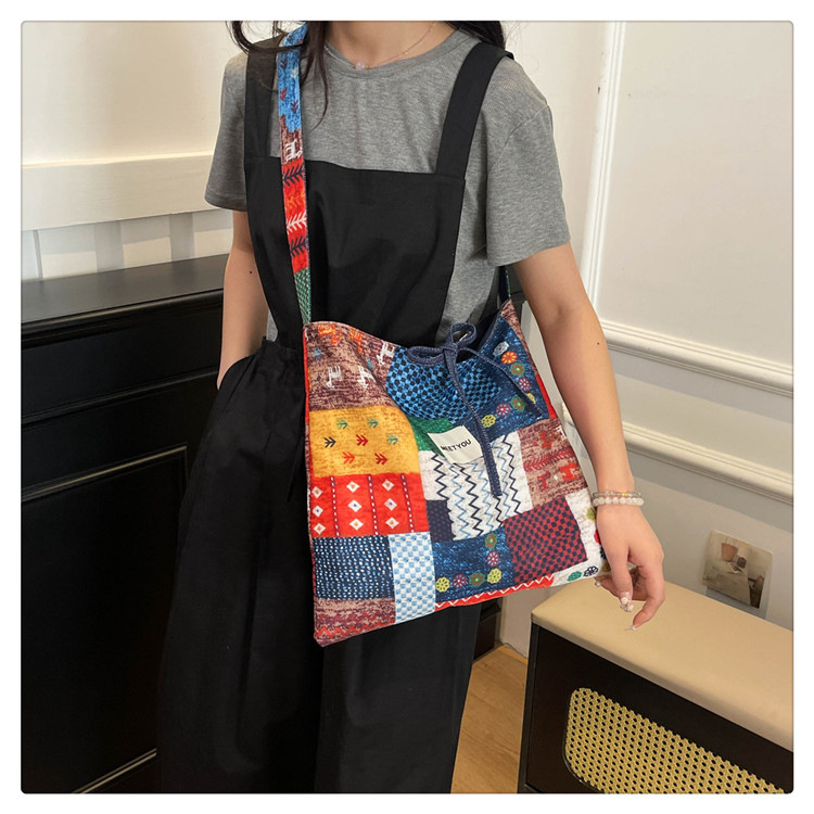 여성을위한 민족 스타일 캔버스 토트 백 2025 시즌 새로운 유행 학생 토트 숄더 백 대용량 핸드백스토어 가기