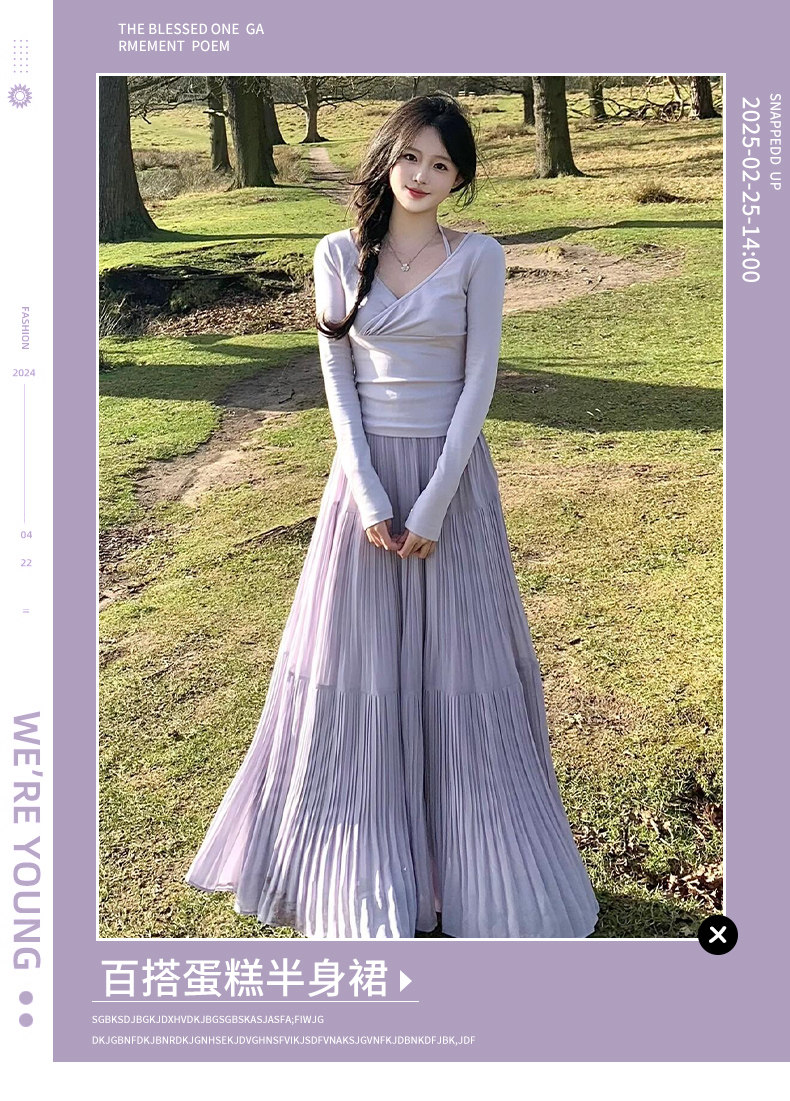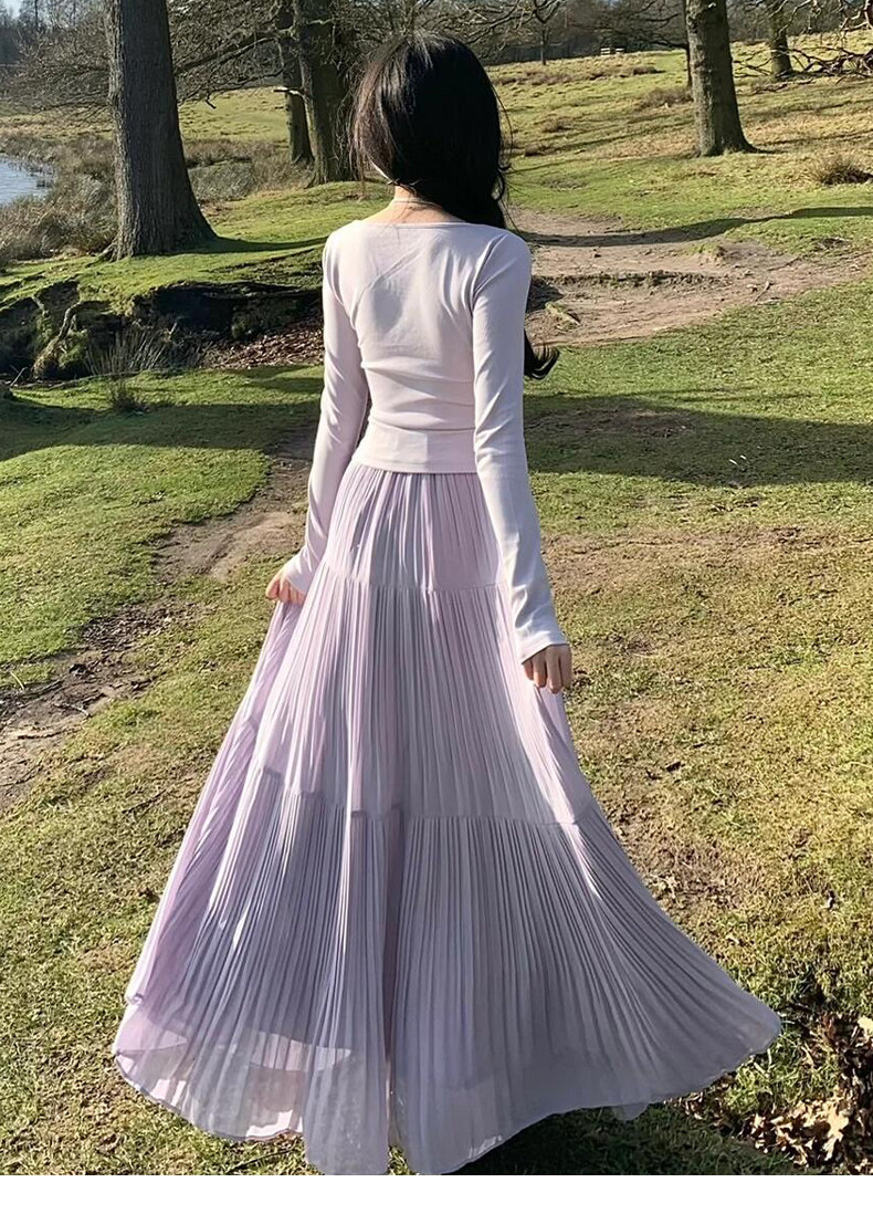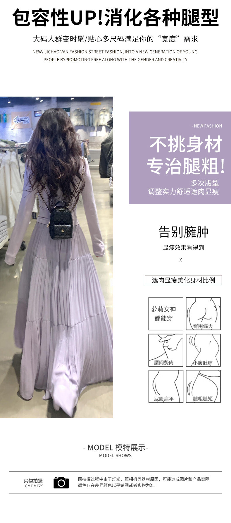 보라색 스커트 여성의 봄과 여름 2025 새로운 높은 허리 대형 스윙 스커트 주름 A-라인 우산 스커트 케이크 미디 스커트