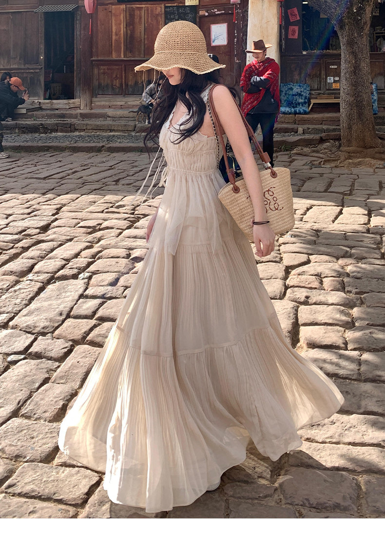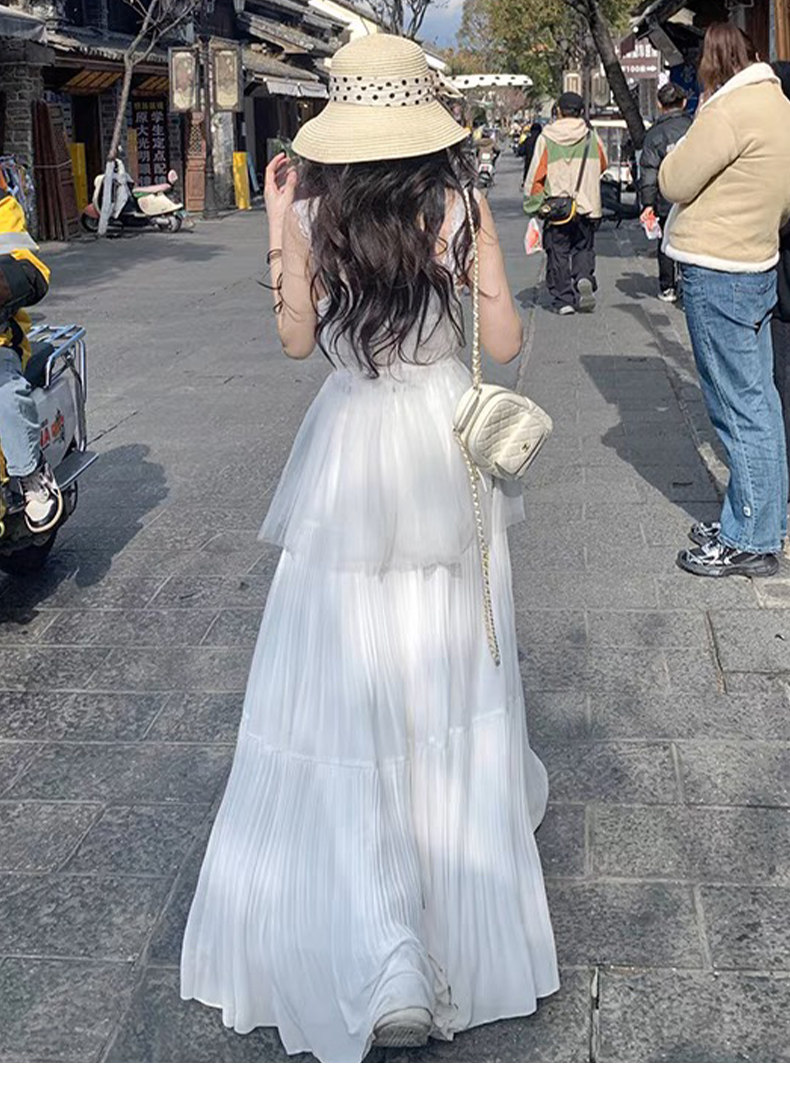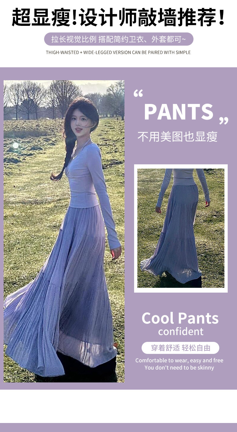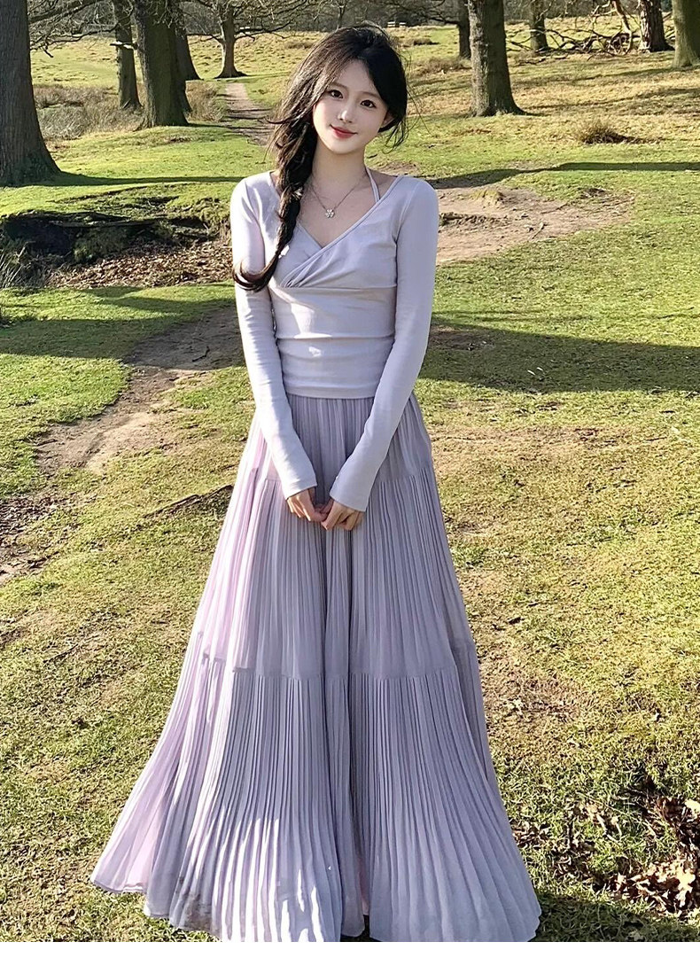 보라색 스커트 여성의 봄과 여름 2025 새로운 높은 허리 대형 스윙 스커트 주름 A-라인 우산 스커트 케이크 미디 스커트