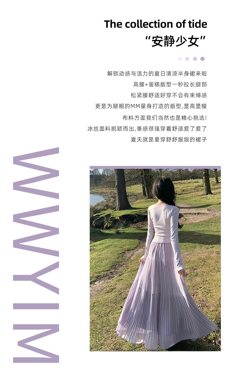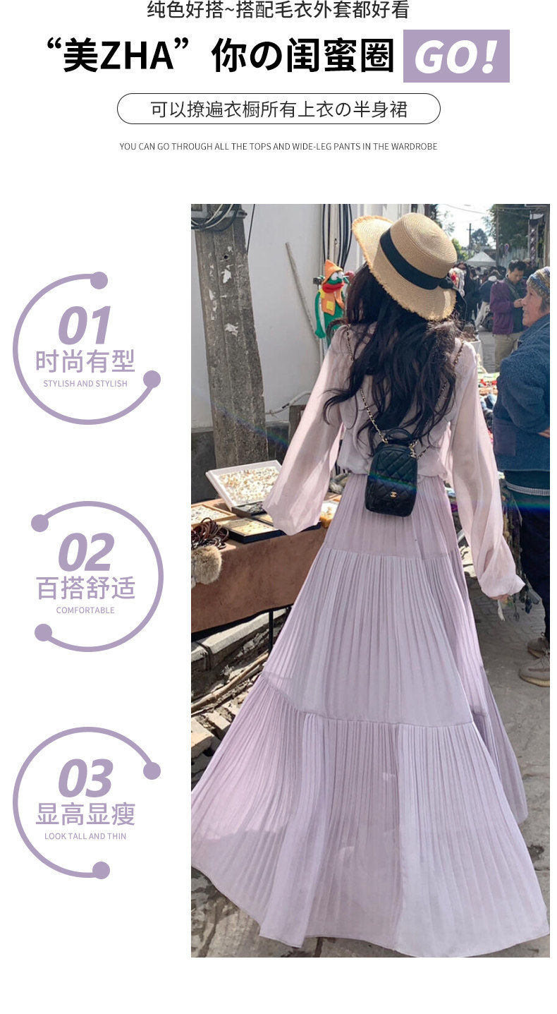 보라색 스커트 여성의 봄과 여름 2025 새로운 높은 허리 대형 스윙 스커트 주름 A-라인 우산 스커트 케이크 미디 스커트스토어 가기