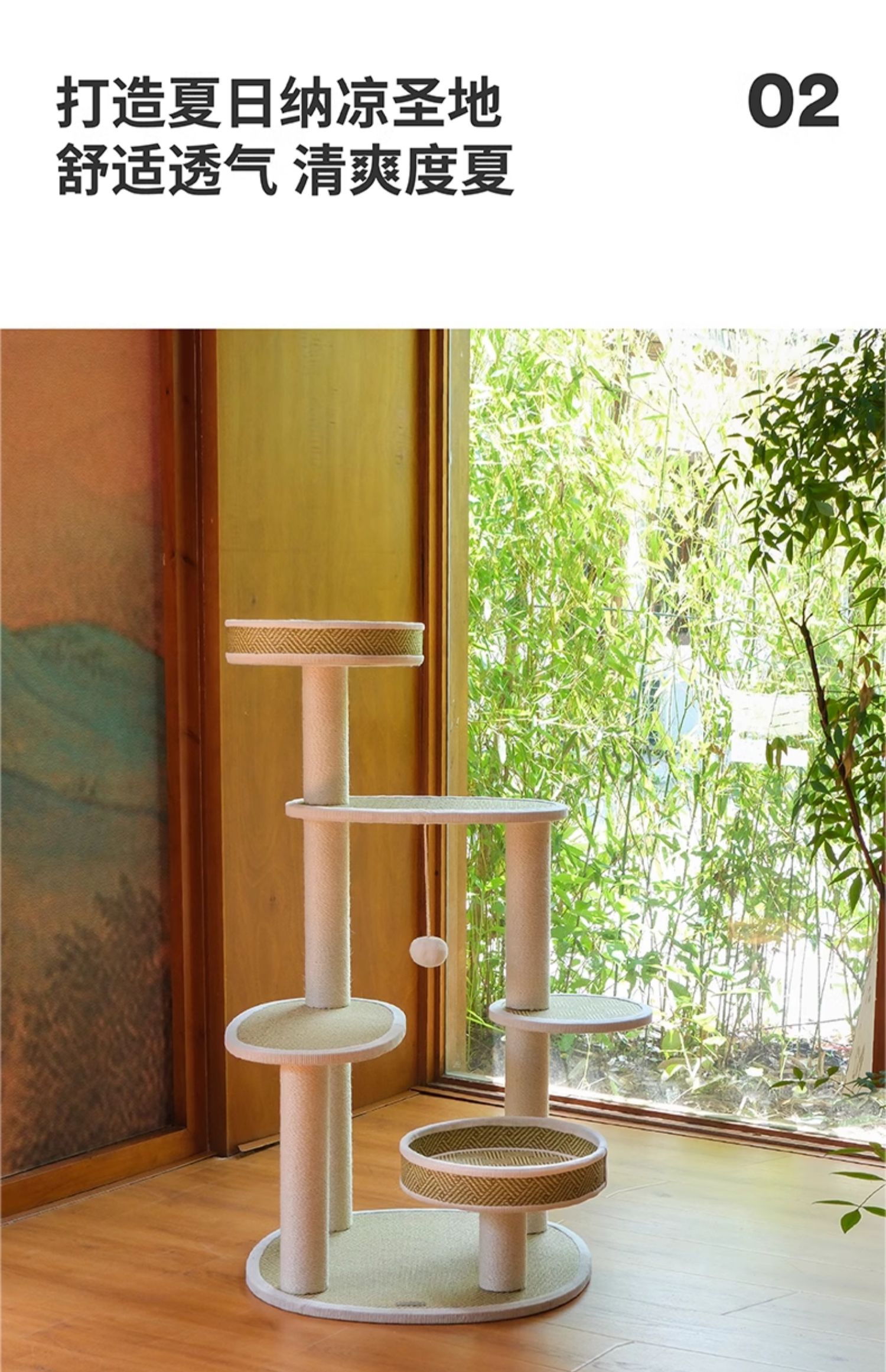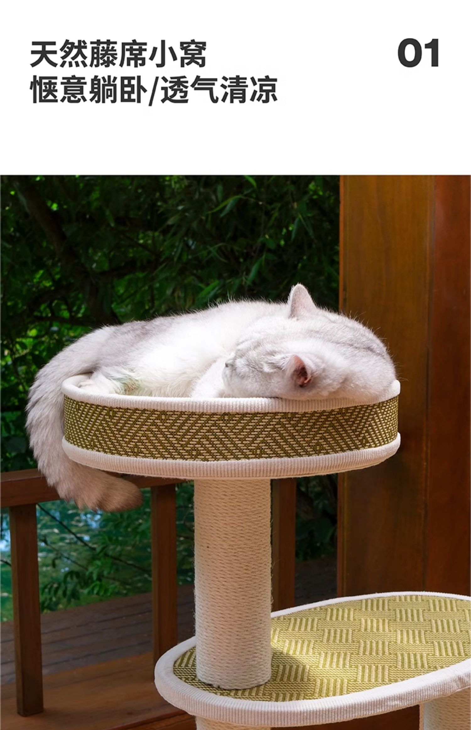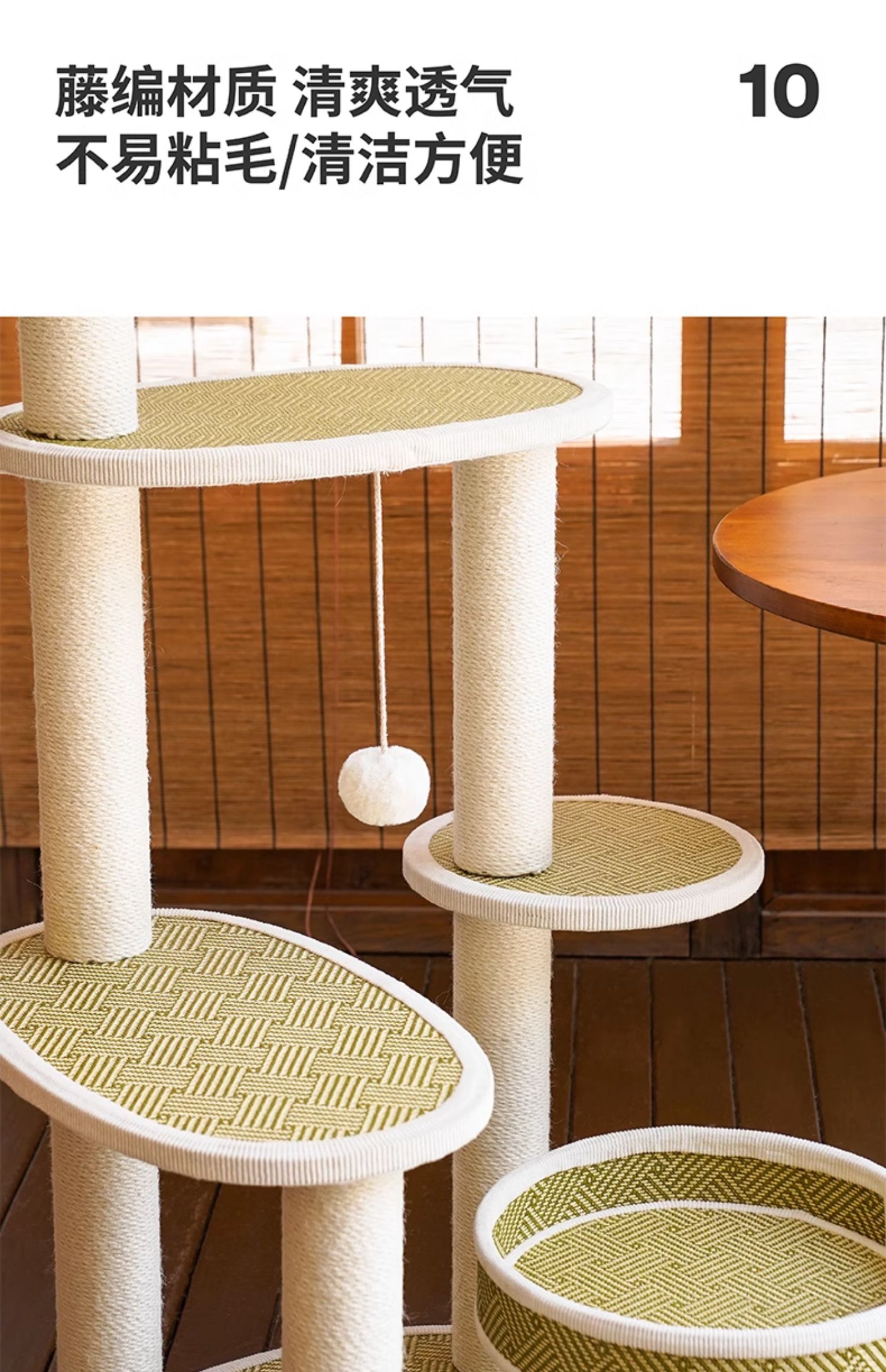 Zeze Zhuli 등나무 냉각 고양이 클라이밍 프레임 여름 냉각 홈 고양이 둥지 고양이 트리 통합 고양이 스크래치 컬럼 고양이 클라이밍 프레임