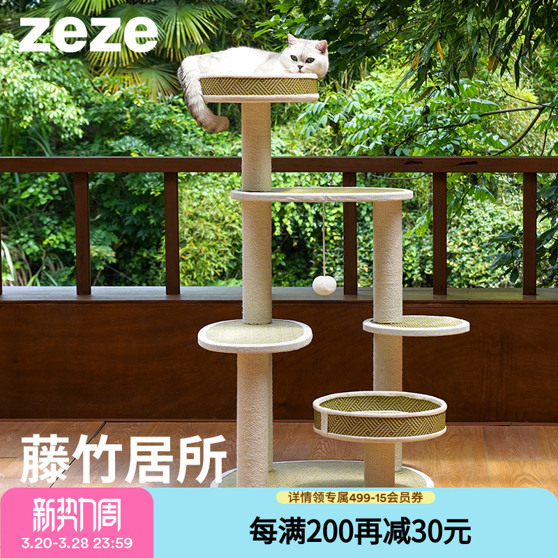 Zeze Zhuli 등나무 냉각 고양이 클라이밍 프레임 여름 냉각 홈 고양이 둥지 고양이 트리 통합 고양이 스크래치 컬럼 고양이 클라이밍 프레임스토어 가기