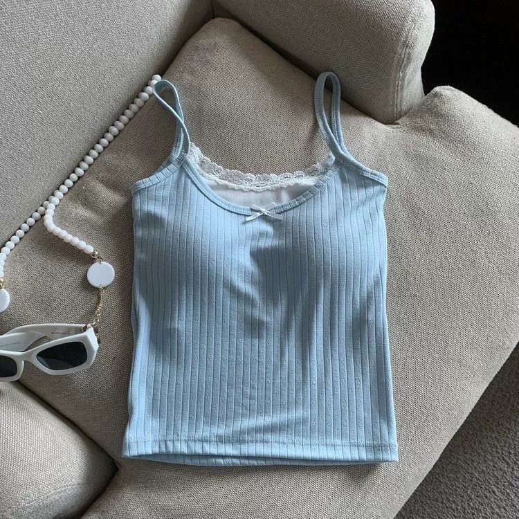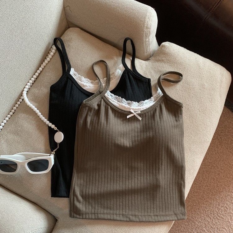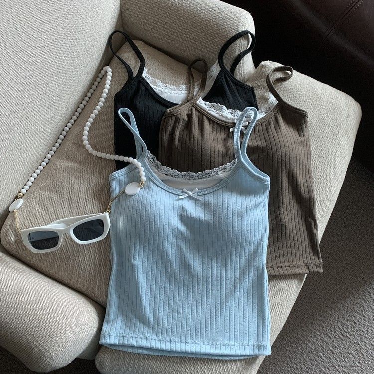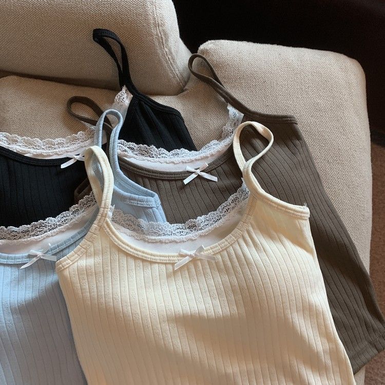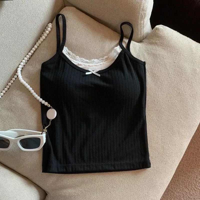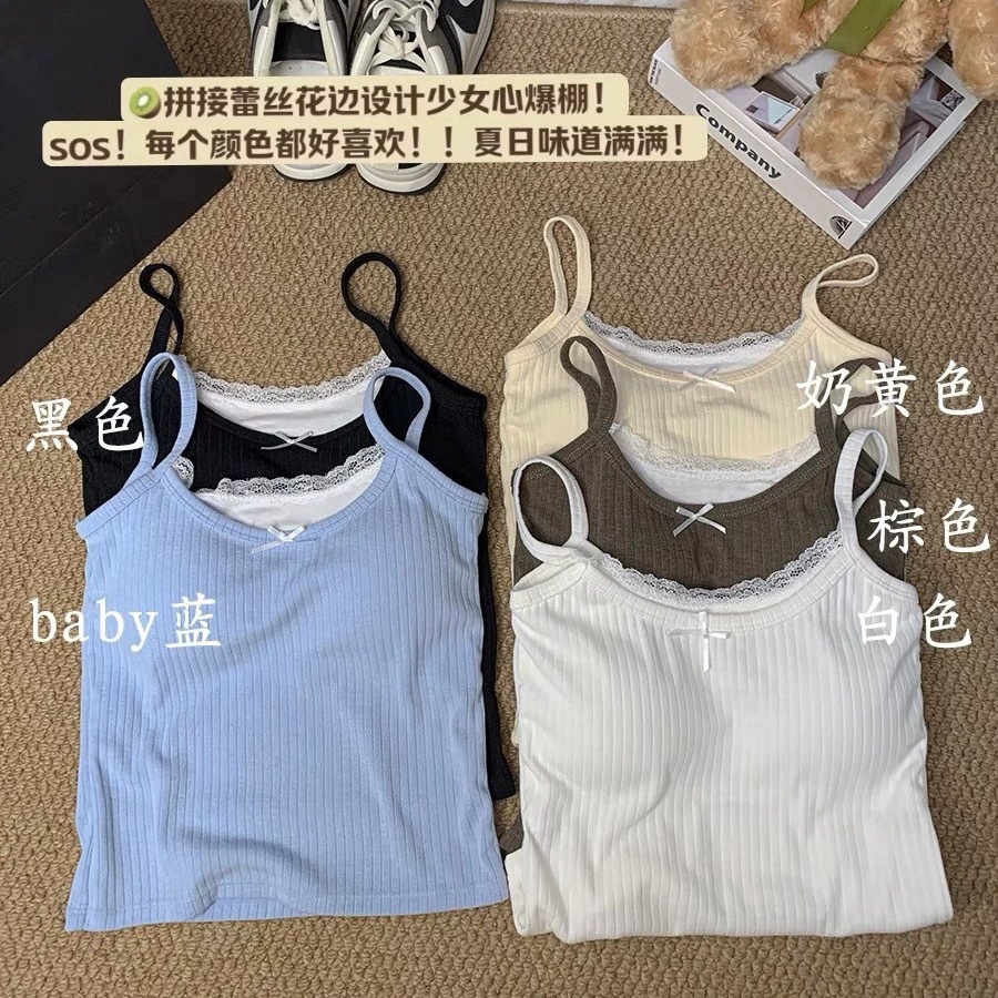 여름 새로운 가짜 2 피스 레이스 카미 솔 조끼 가슴 패드 스파이스 소녀 순수하고 슬림 핏 내부 슬리밍 탑