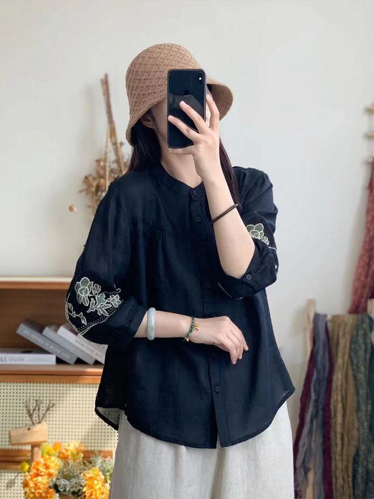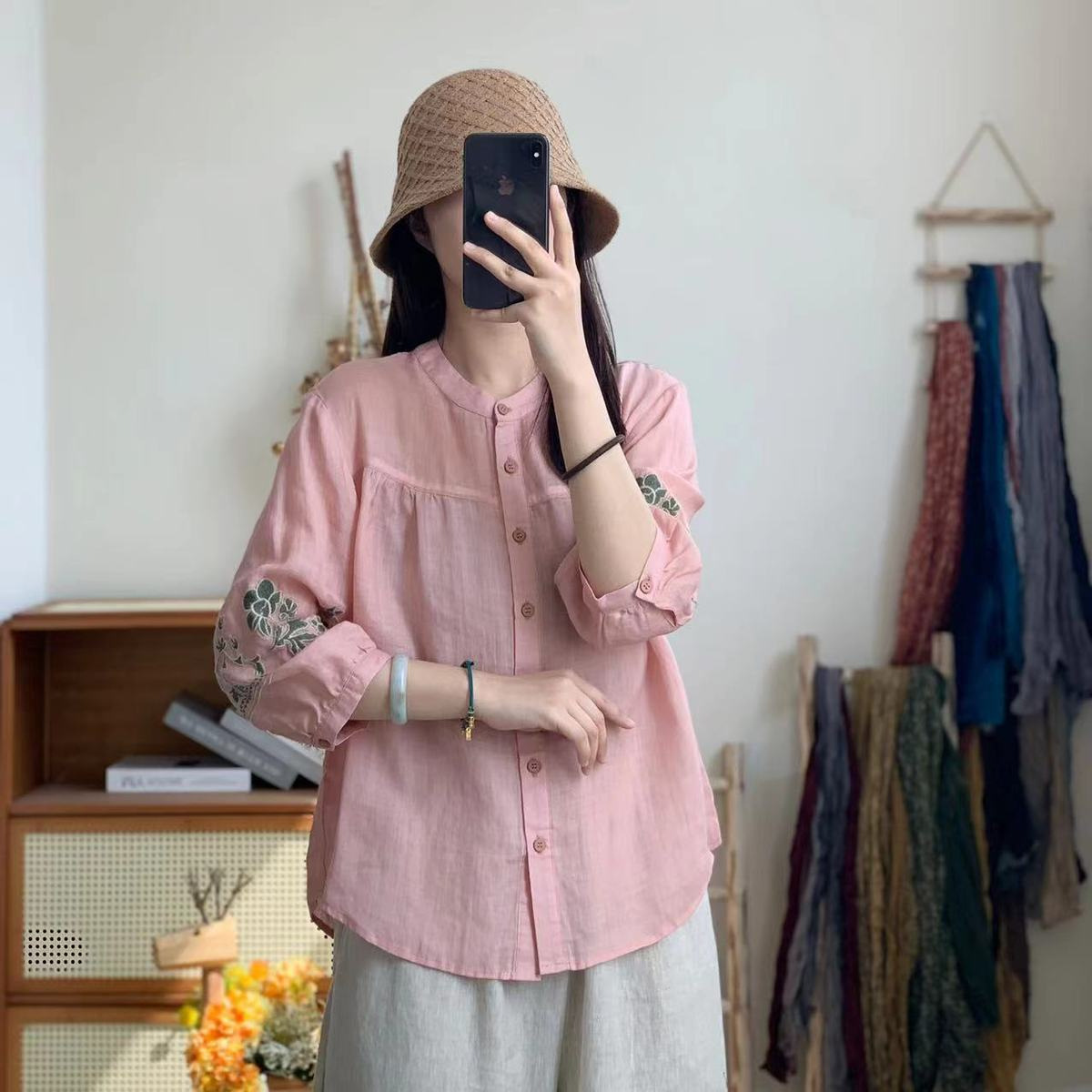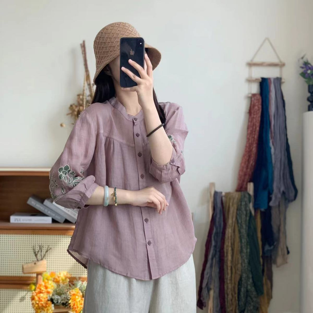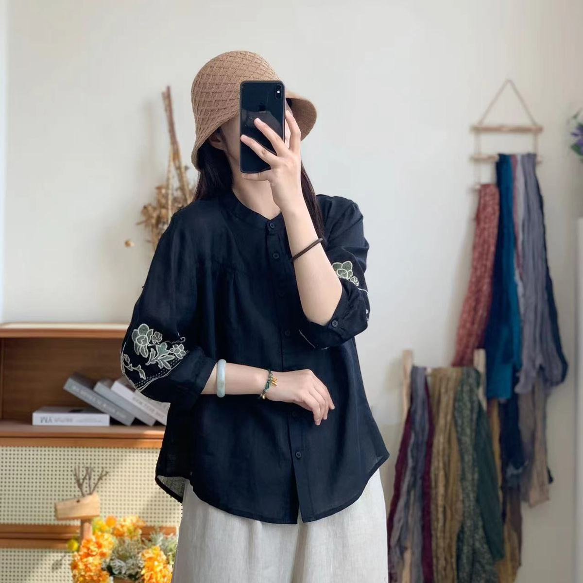 중국 스타일 자수 셔츠 2025 여름 새로운 복고풍 문학 스타일 느슨한 7부 소매 다목적 지방 mm 카디건 셔츠스토어 가기