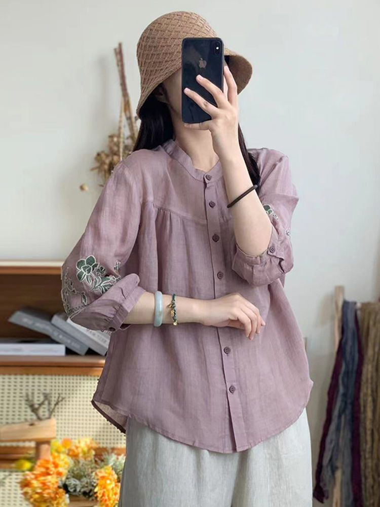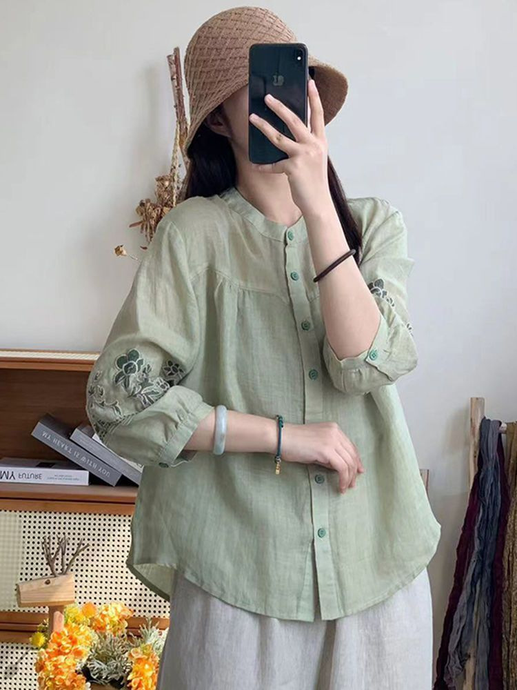 중국 스타일 자수 셔츠 2025 여름 새로운 복고풍 문학 스타일 느슨한 7부 소매 다목적 지방 mm 카디건 셔츠