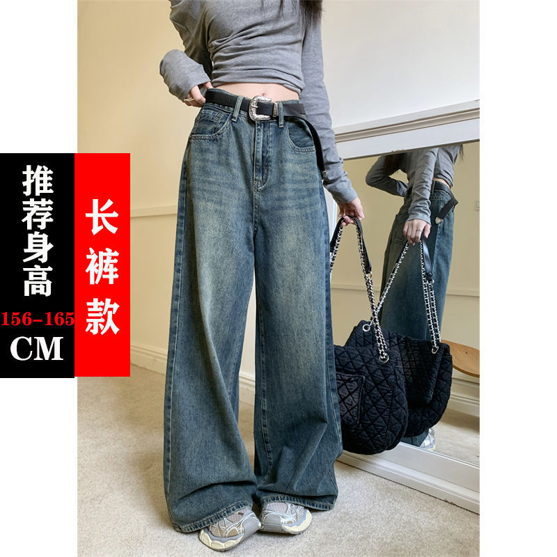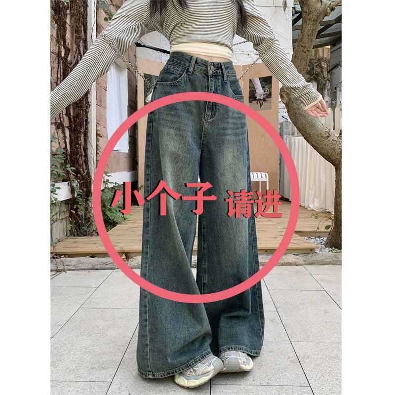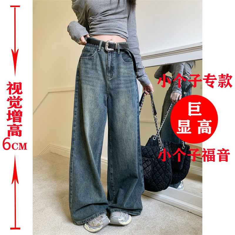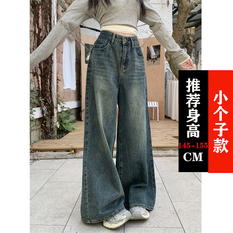 145 여성용 짧은 복고풍 하이 웨이스트 와이드 레그 청바지, 루즈하고 슬림한 스트레이트 레그 바닥 길이 바지, 트렌디