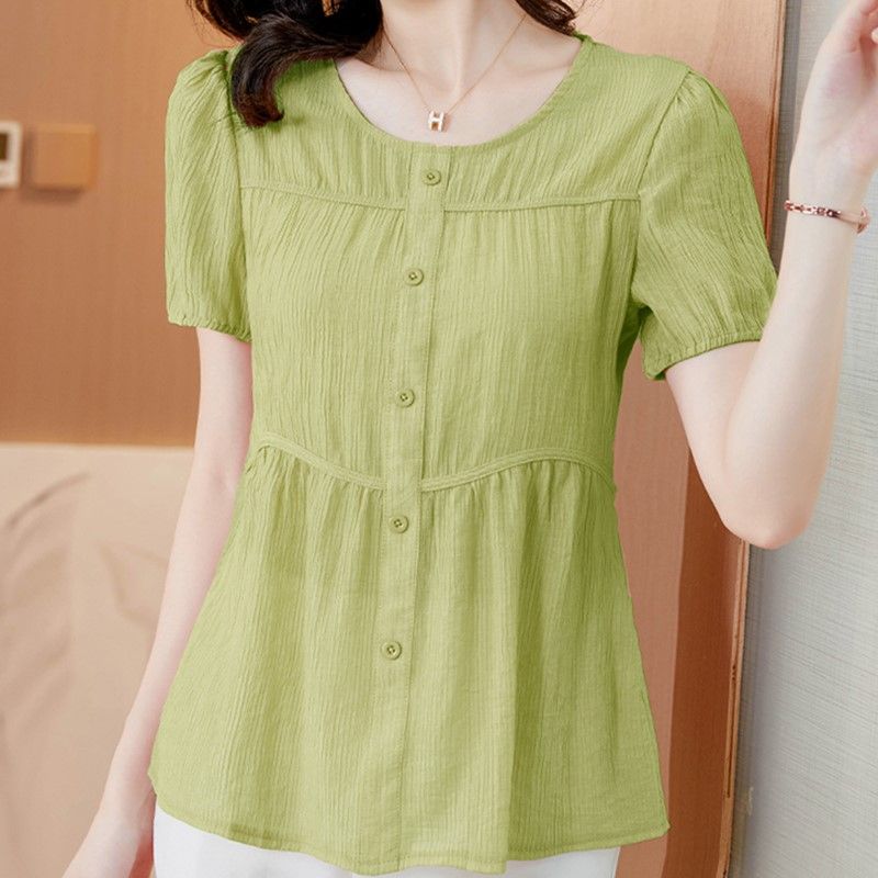 여성 셔츠 반팔 티셔츠 2025 여름 새로운 스타일 탑 라운드 넥 셔츠 패션 세련된 절묘한 작은 셔츠 탑