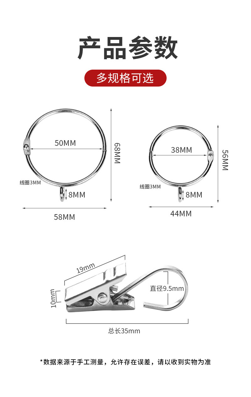 • 3.8cm 금속 분할 링 + 스테인레스 스틸 301 클립