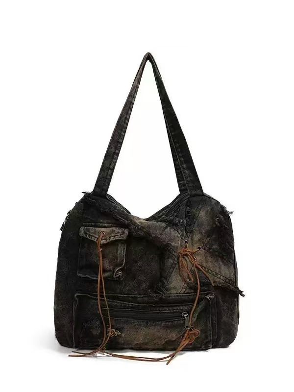 2025 새로운 대용량 토트 백 핫 소녀 가방 여성의 오래된 복고풍 어깨 가방 워시 데님 가방 캐주얼 여성 가방스토어 가기