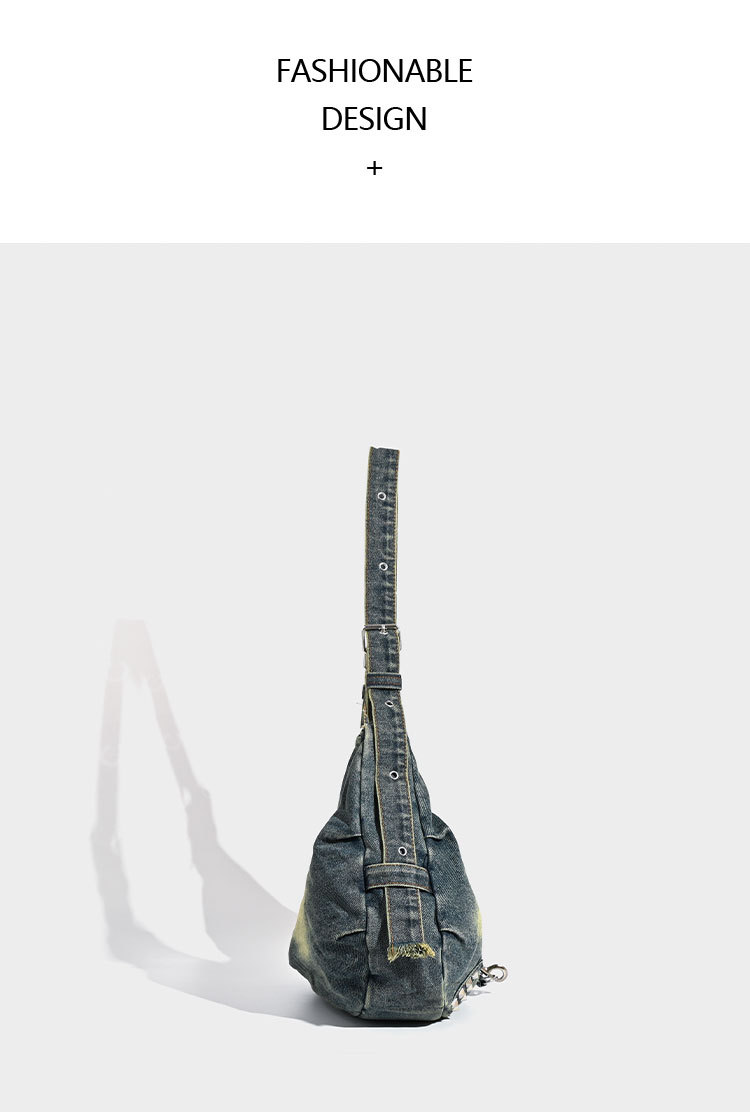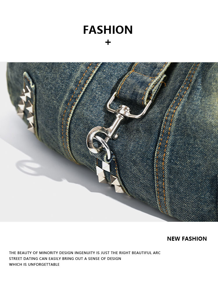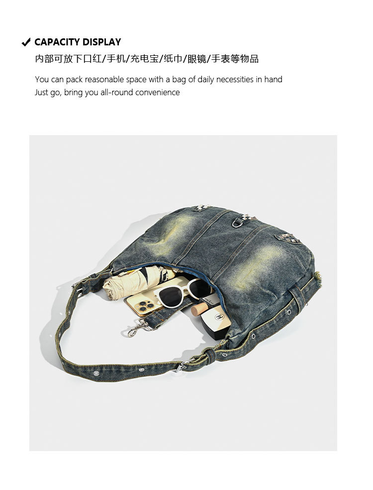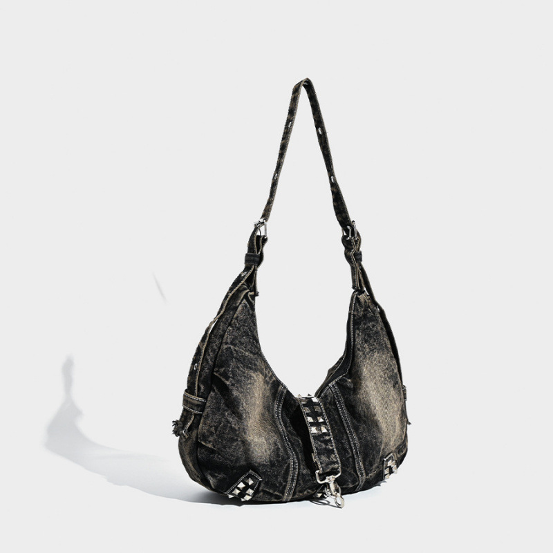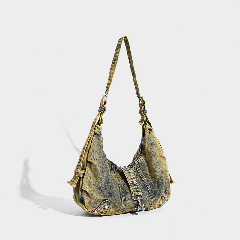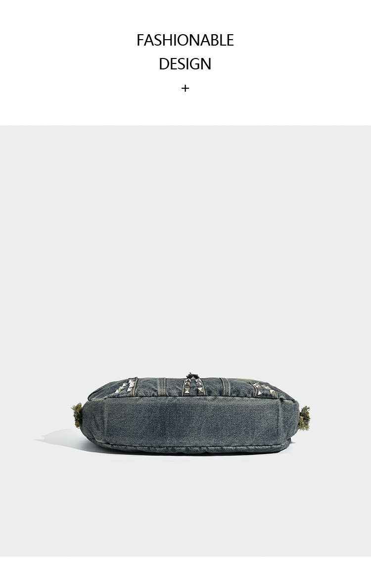 2025 새로운 대용량 세탁 데님 가방 토트 백 리벳 아메리칸 스타일 Ins 스타일 여성 가방 스타일 어깨 가방 크로스 테두리