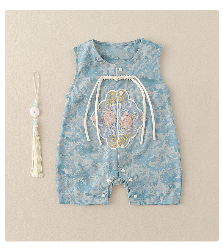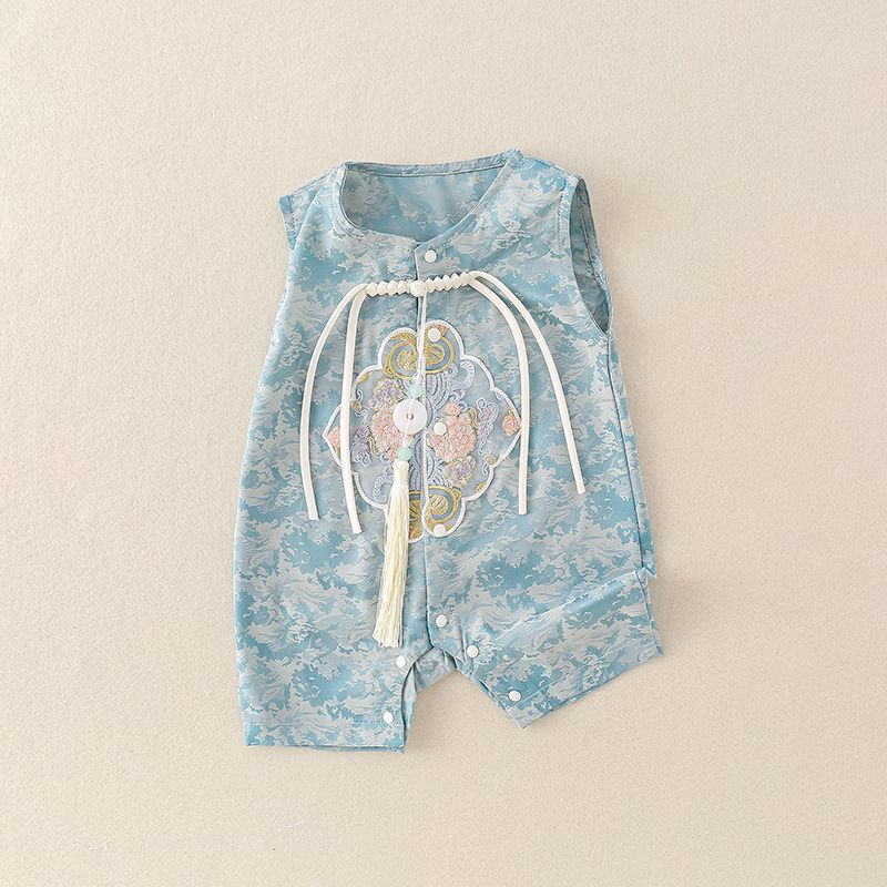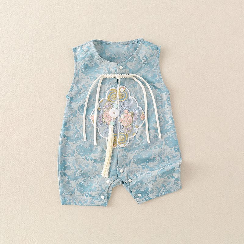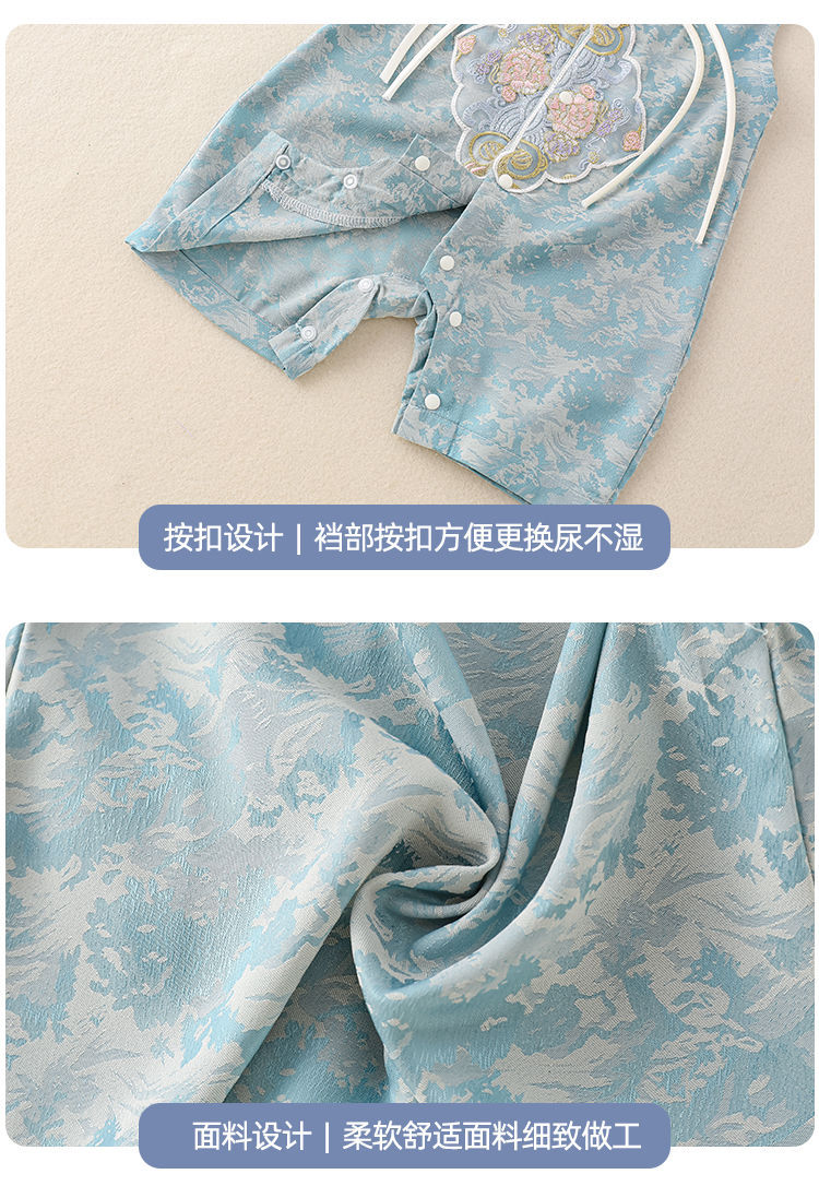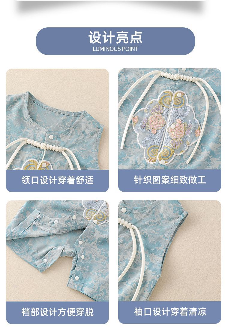 중국식 100 일 아기 옷 여름 점프 수트 여름 얇은 아기 옷 보름달 한 살짜리 원피스 등반 세트
