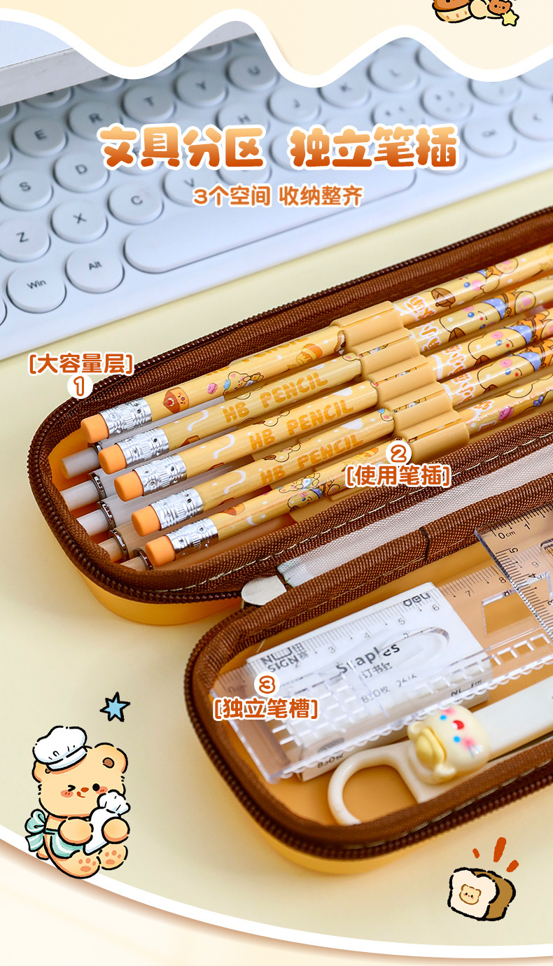 노란 곰 편지지 상자 학생 연필 보관 상자 방수 연필 케이스 대용량 DIY 연필 케이스 편지지 상자 도매스토어 가기