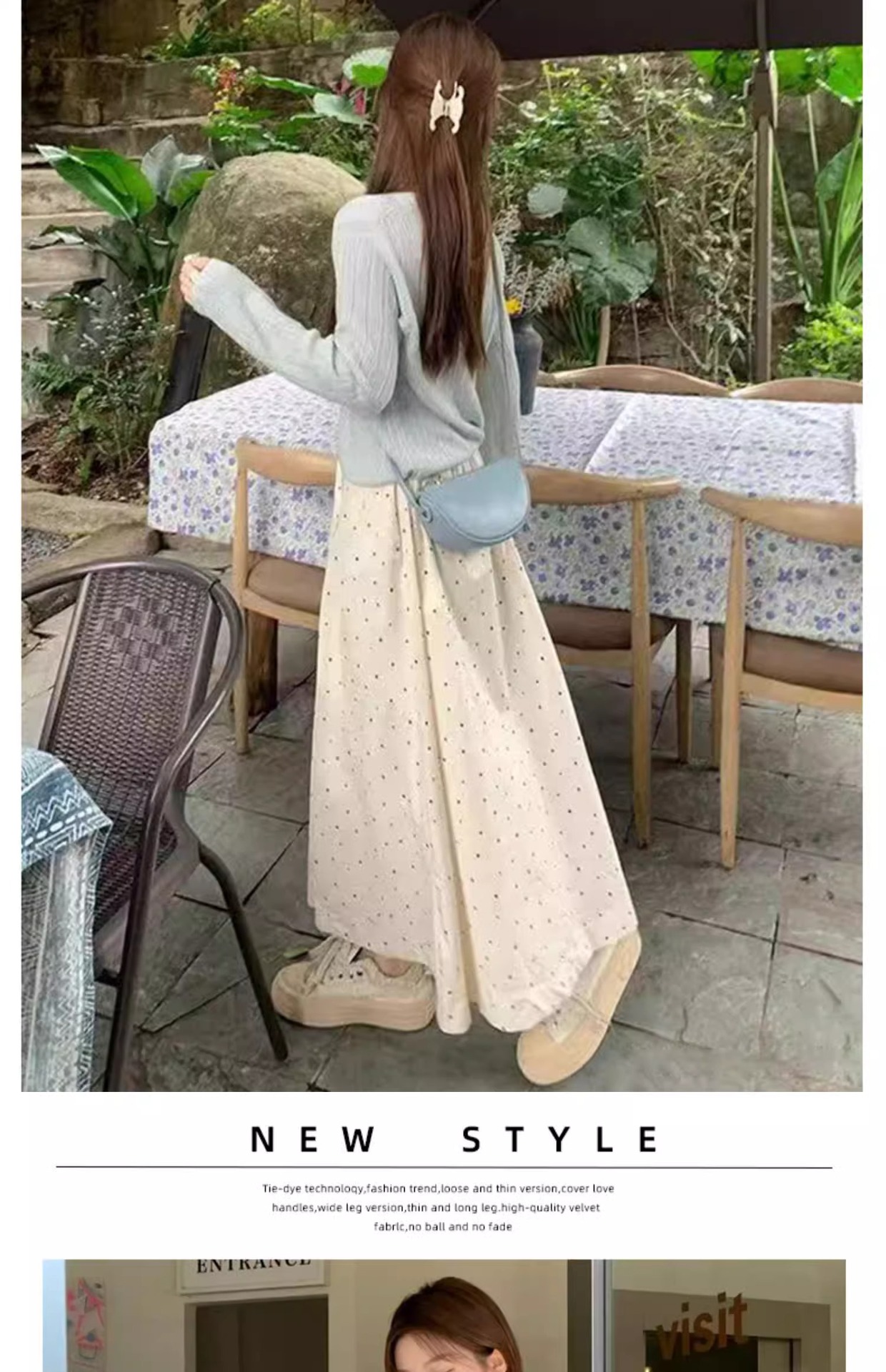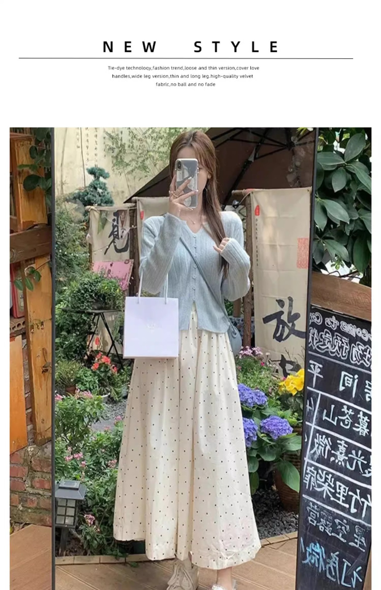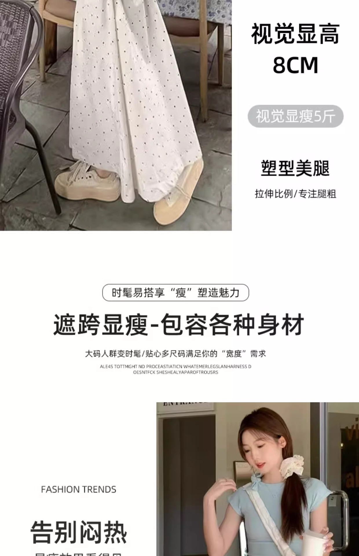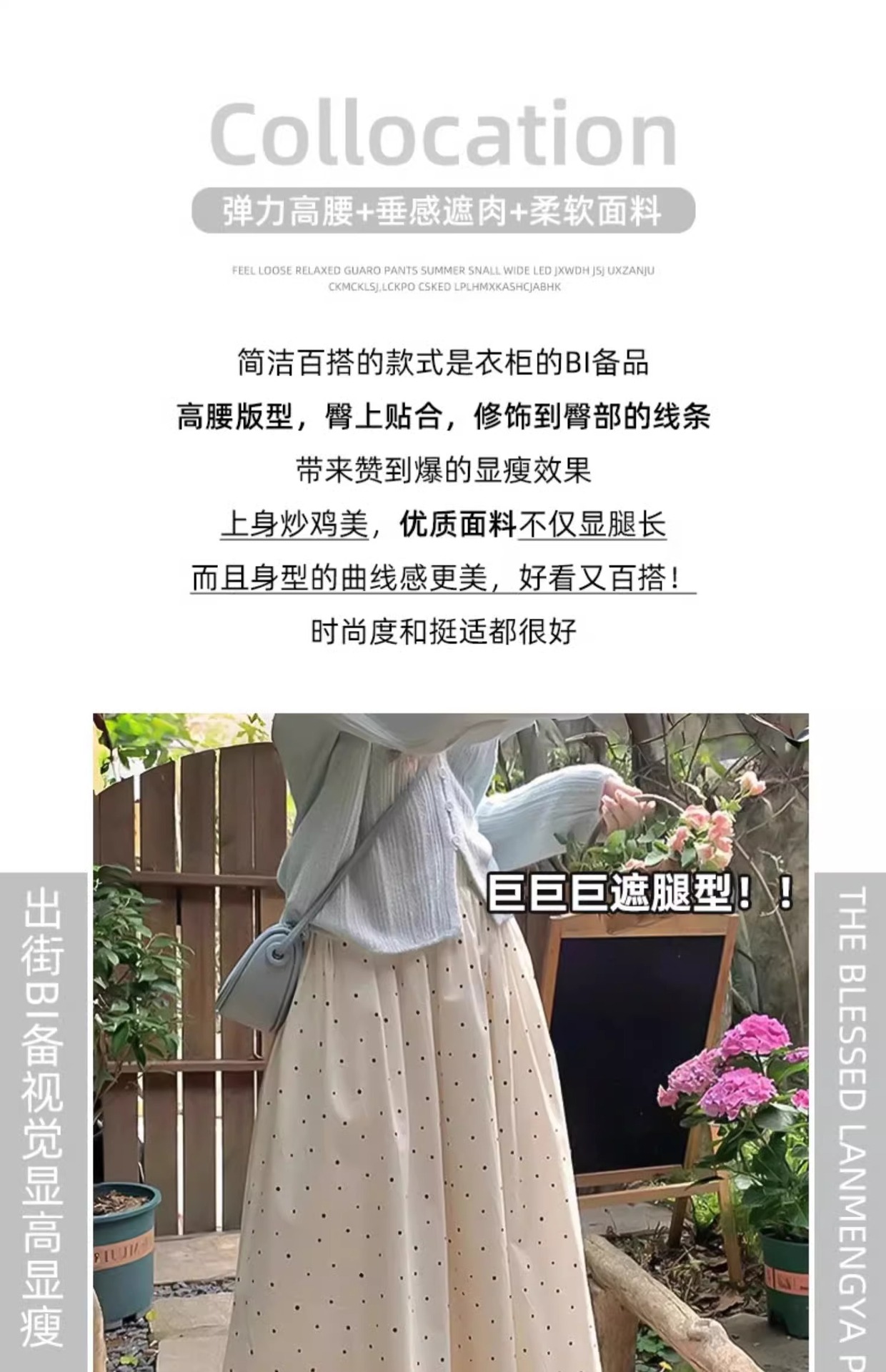 화이트 웨이브 도트 스커트 여성의 봄과 여름 2025 새로운 높은 허리 엉덩이 커버 슬리밍 A 라인 스커트 부드러운 스타일 대형 우산 스커트스토어 가기