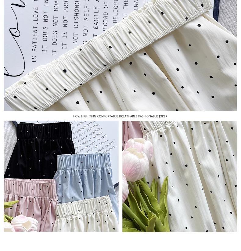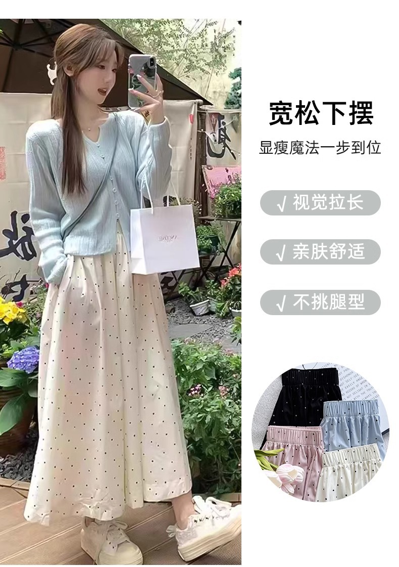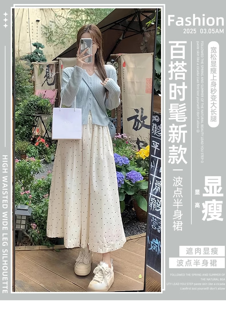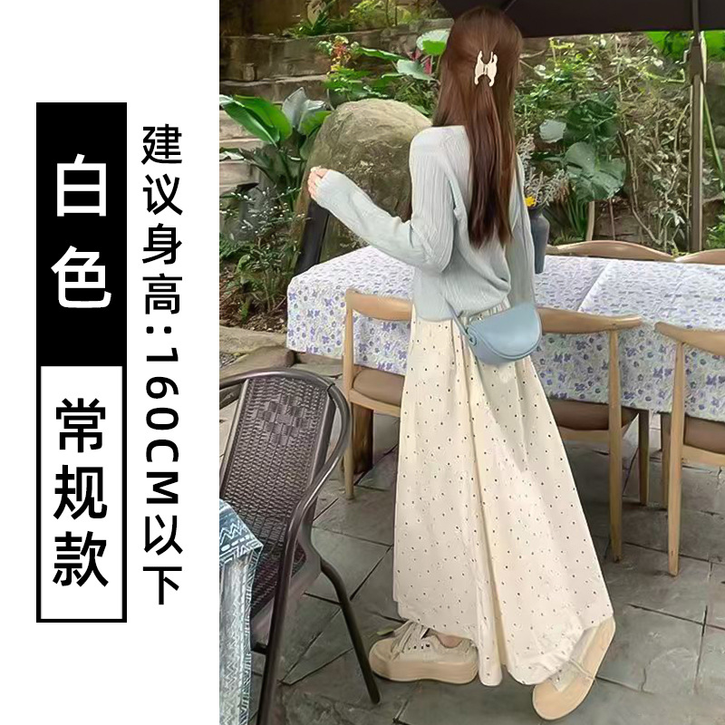 화이트 웨이브 도트 스커트 여성의 봄과 여름 2025 새로운 높은 허리 엉덩이 커버 슬리밍 A 라인 스커트 부드러운 스타일 대형 우산 스커트
