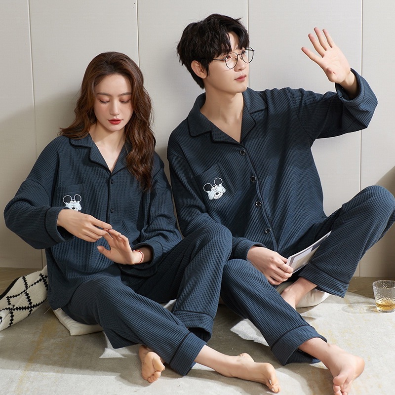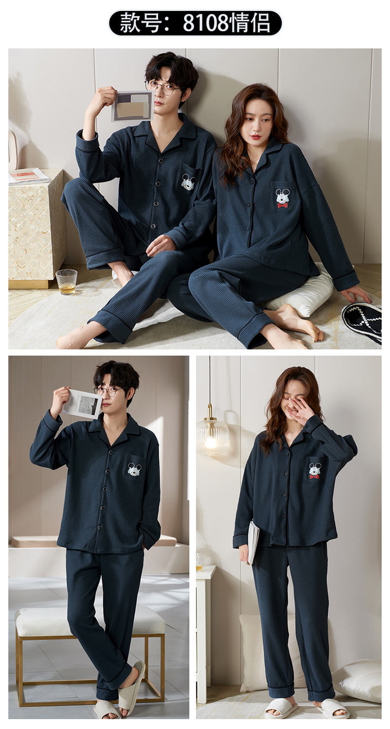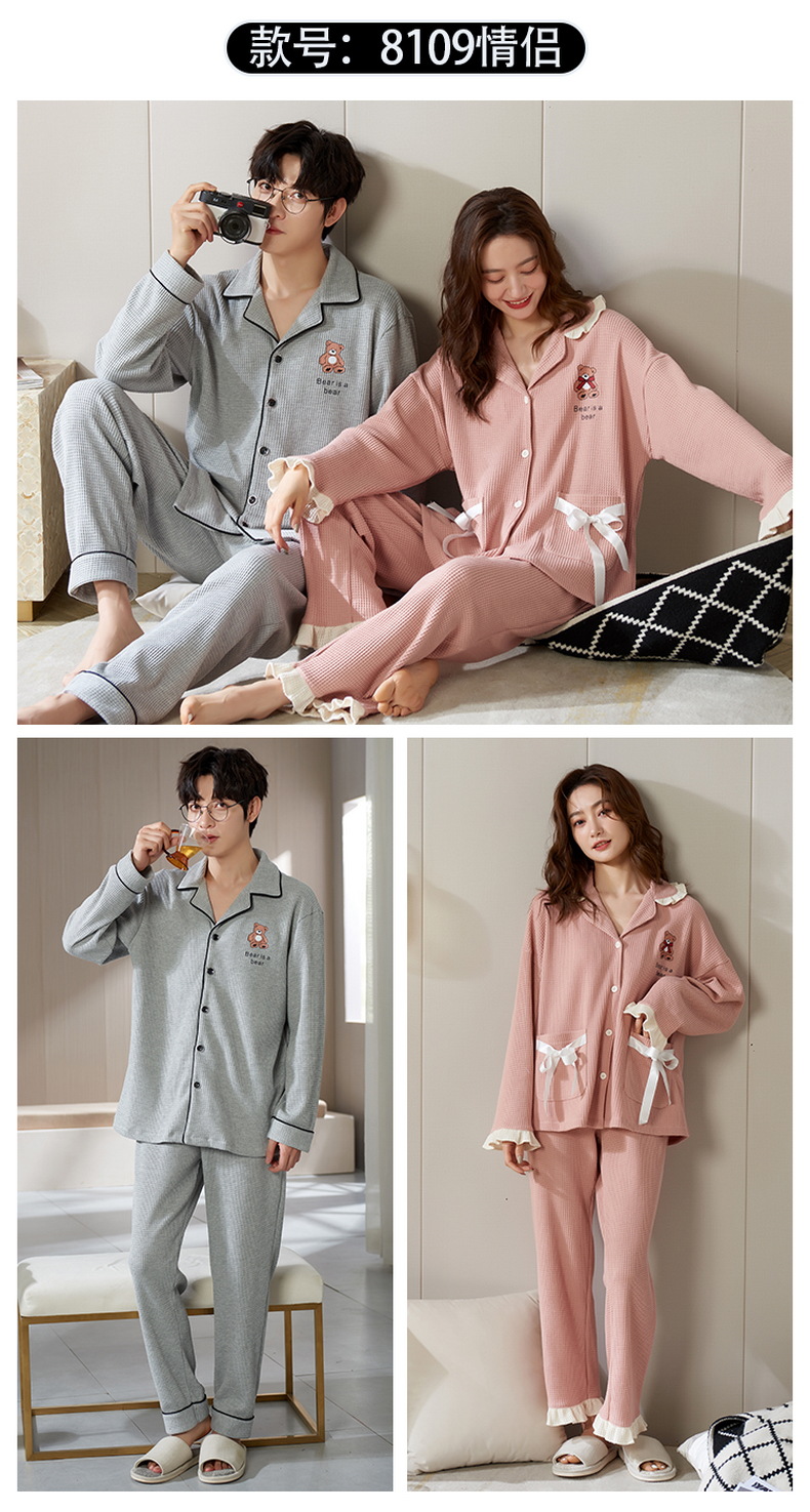 커플 잠옷 옷깃 카디건 긴 소매 코튼 한국 스타일 귀여운 여성 플러스 사이즈 남성 봄과 여름 홈 겉옷스토어 가기