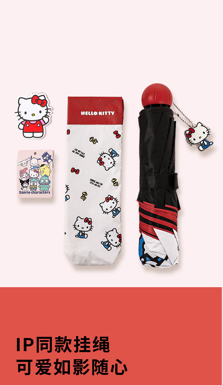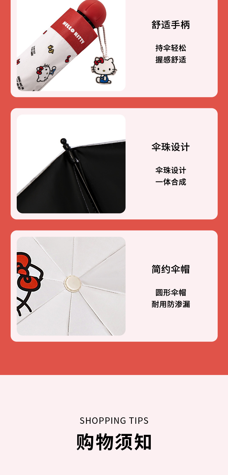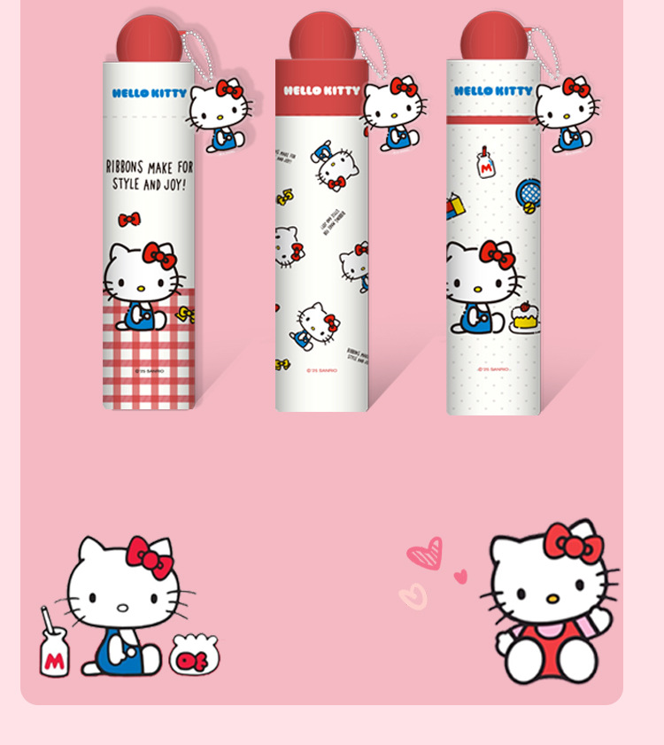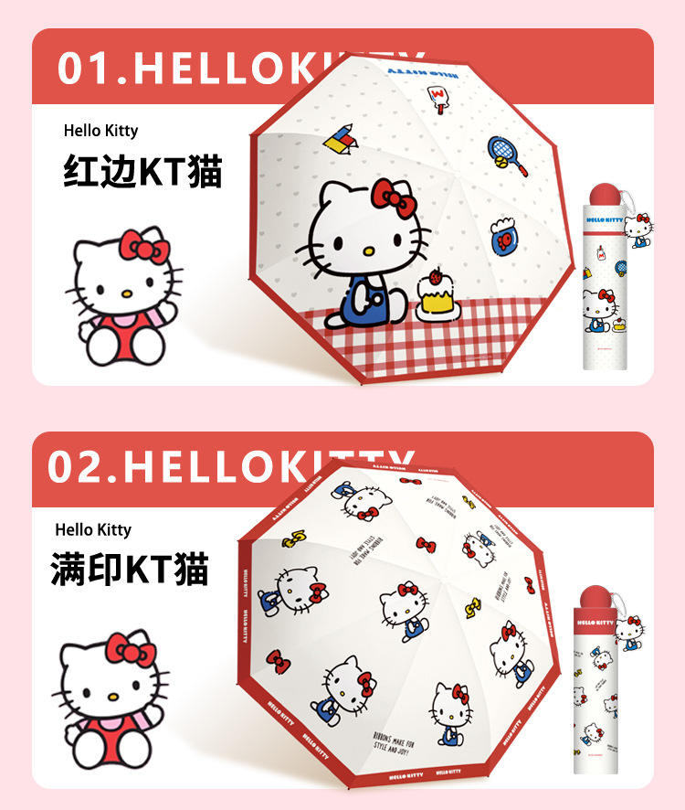 정품 공인 산리오 헬로 키티 매뉴얼 3 배 우산 햇빛과 비 이중 목적 반 태양 만화 귀여운 휴대용 접는 우산스토어 가기