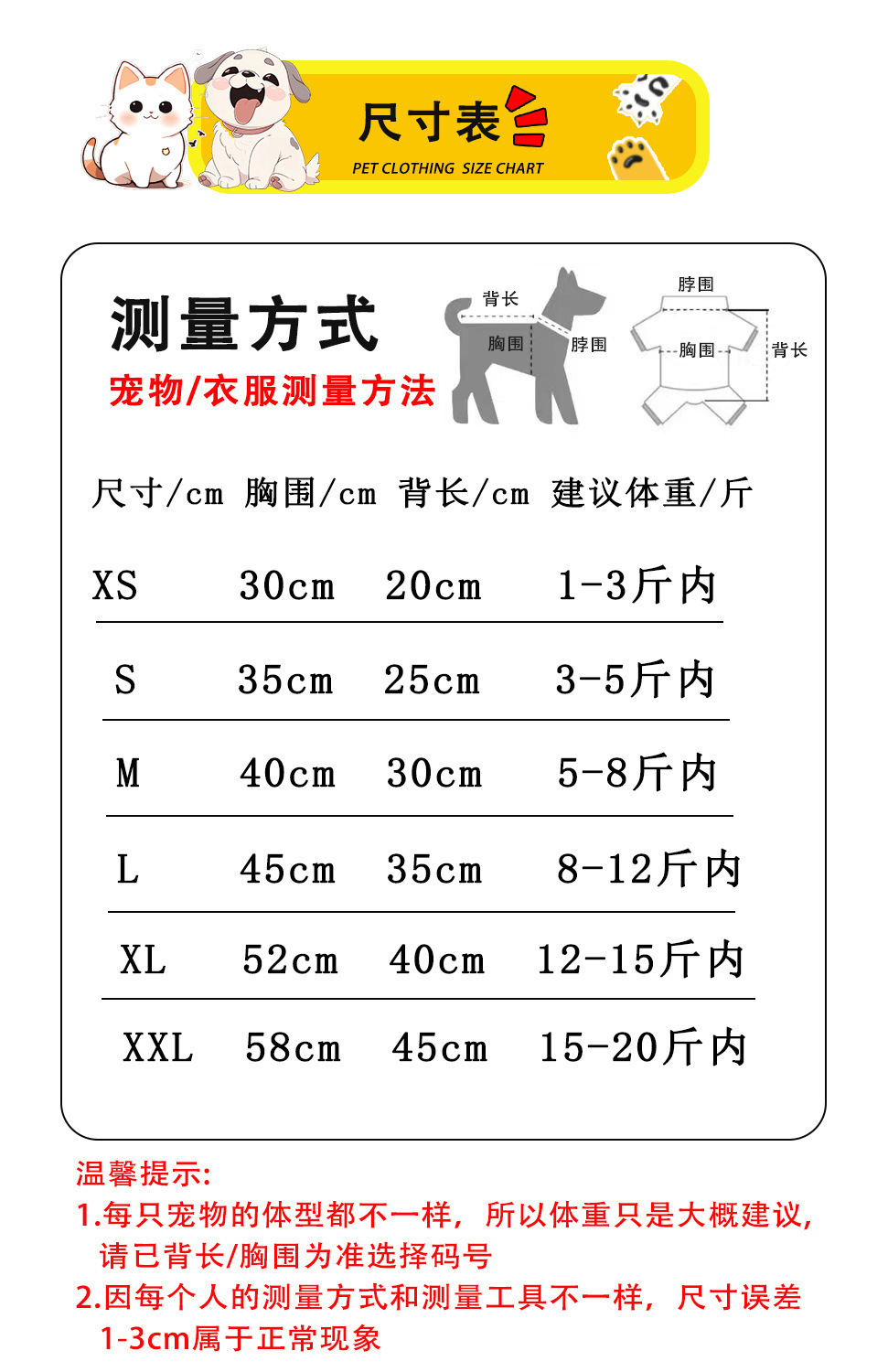 • XS(가슴둘레 30cm 0.5-1.5kg 애완동물)