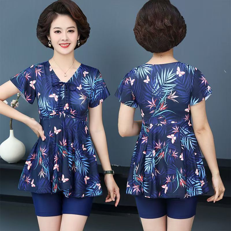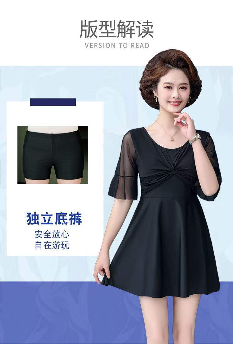 어머니의 수영복 여성의 배꼽 뒤덮인 슬리밍 보수 분할 스커트 중년 및 노인 스파 플러스 플러스 사이즈 성인 수영복스토어 가기
