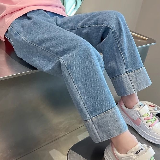 봄, 가을 여아 청바지, 유아 패션, 아동 맞춤형 트렌디 브랜드, 한국식 패셔너블한 컬러 블록 인터넷 연예인 스트레이트 팬츠
