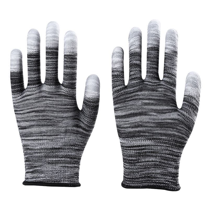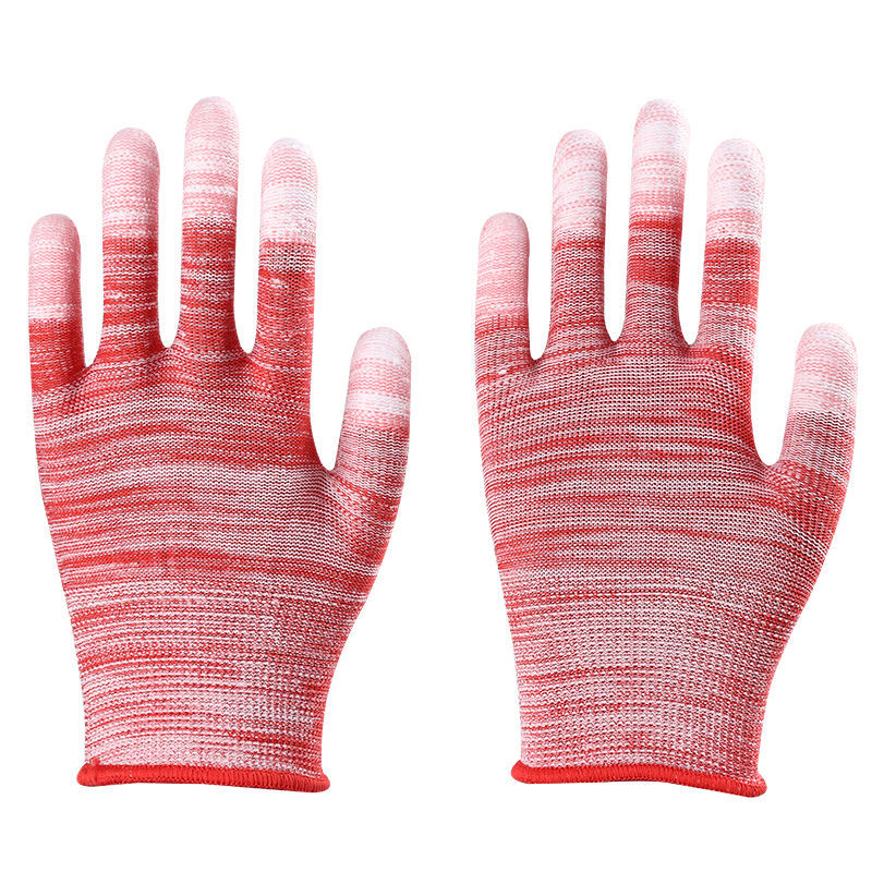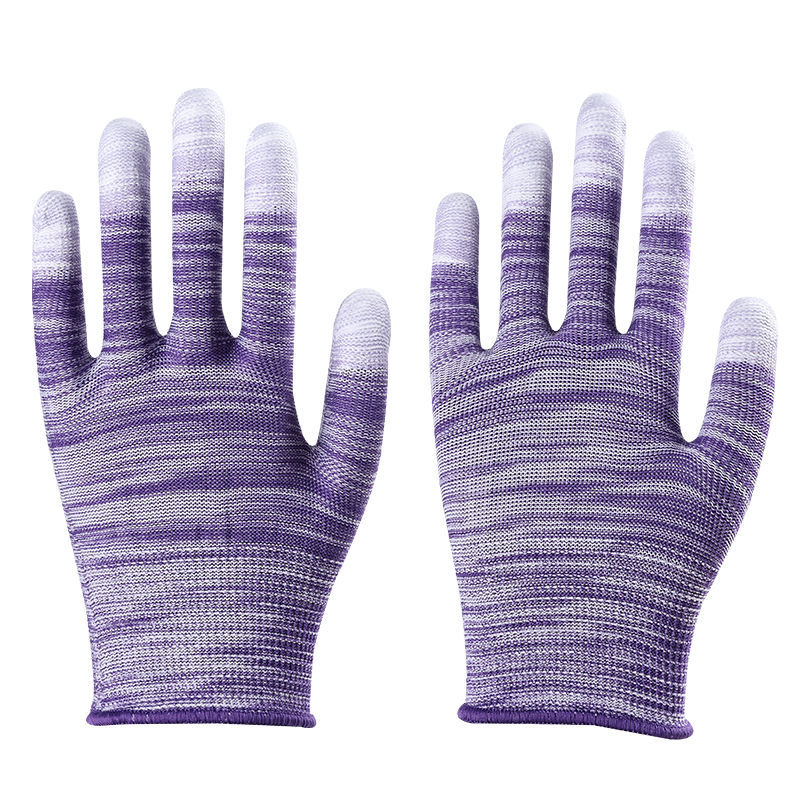 얇은 흰색 PU 코팅 손가락과 손바닥 내마모성, 미끄럼 방지, 통기성 및 정전기 방지 전자 공장 남성 및 여성 작업 노동 보호 장갑