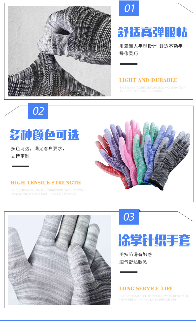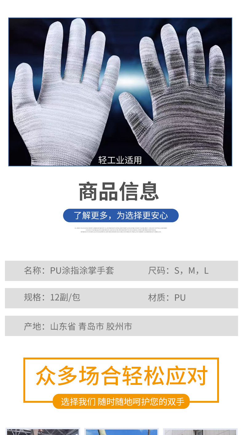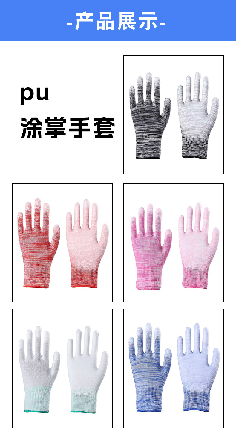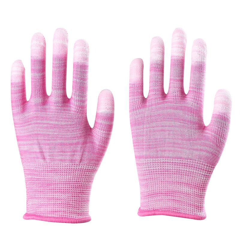 얇은 흰색 PU 코팅 손가락과 손바닥 내마모성, 미끄럼 방지, 통기성 및 정전기 방지 전자 공장 남성 및 여성 작업 노동 보호 장갑스토어 가기