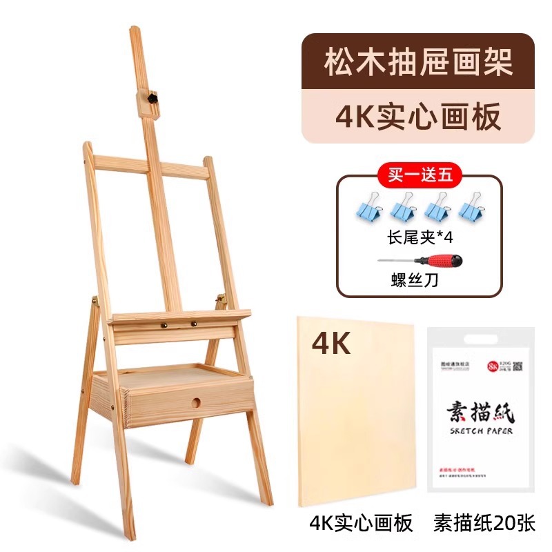 • 소나무 통나무 서랍 이젤 + 4K 솔리드 드로잉 보드 [1개 구매시 5개 무료]