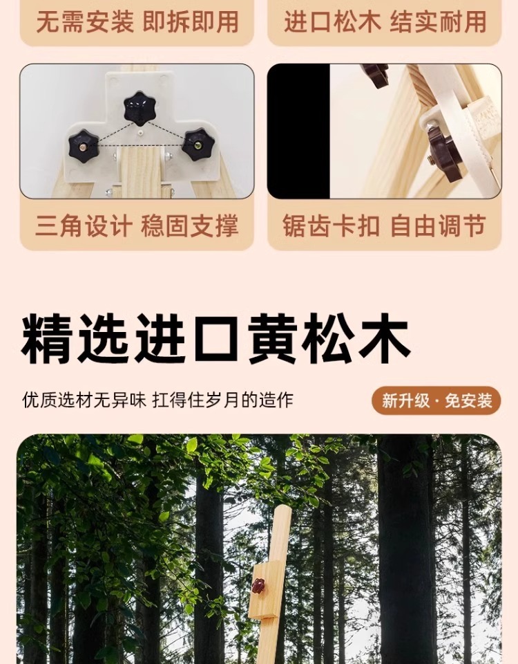 • 1.5m 소나무 이젤 [설치가 필요 없는 업그레이드 모델] 대담하고 두꺼워짐