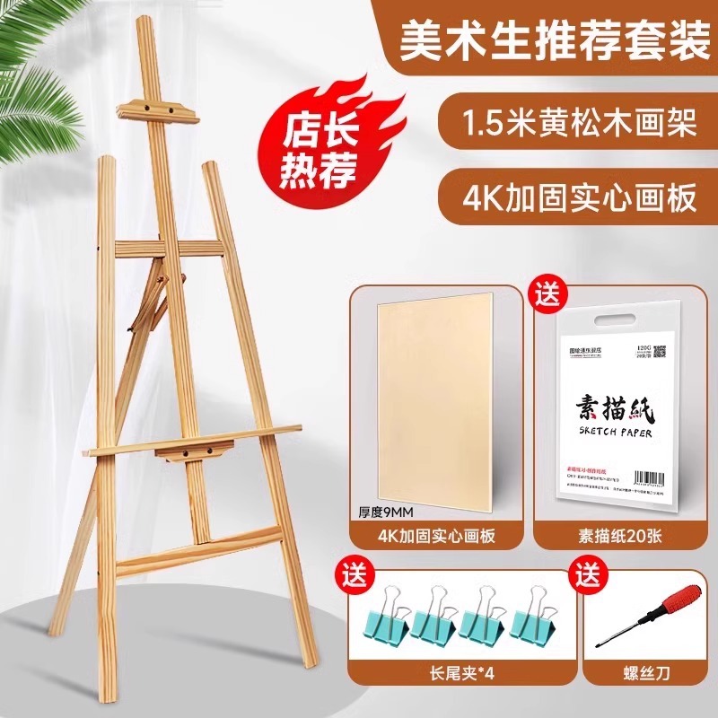 • 1.5m 소나무 이젤 [설치가 필요 없는 업그레이드 모델] + 4K 솔리드 화판 (1개 구매시 5개 무료)