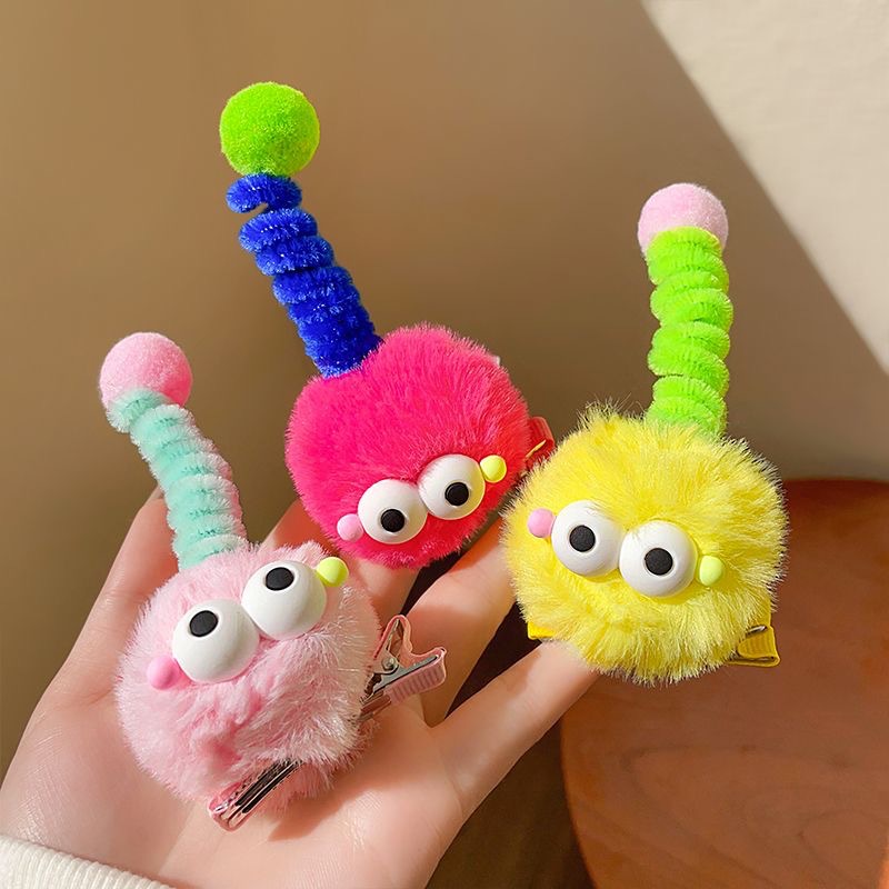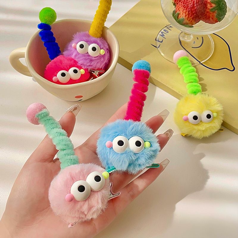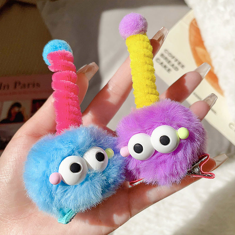 만화 재미 작은 석탄 공 머리핀 컬러 트위스트 스틱 작은 괴물 머리 공 머리핀 창조적 인 귀여운 봉제 머리 장식 여성스토어 가기