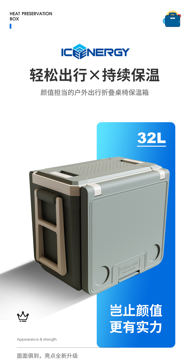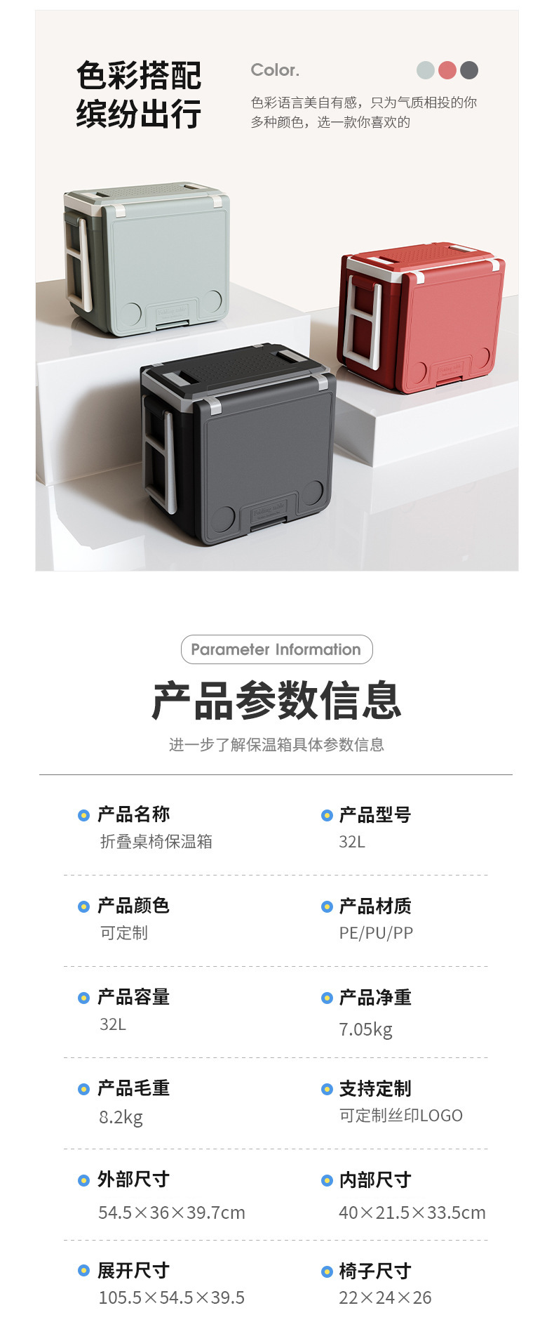 ✅32 리터 야외 캠핑 다기능 휴대용 접이식 테이블과 의자 인큐베이터 자동차 피크닉 아이스 푸드 등급 냉동