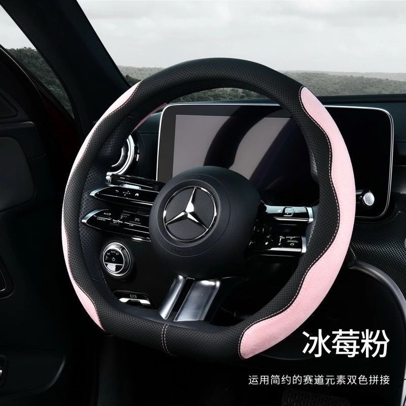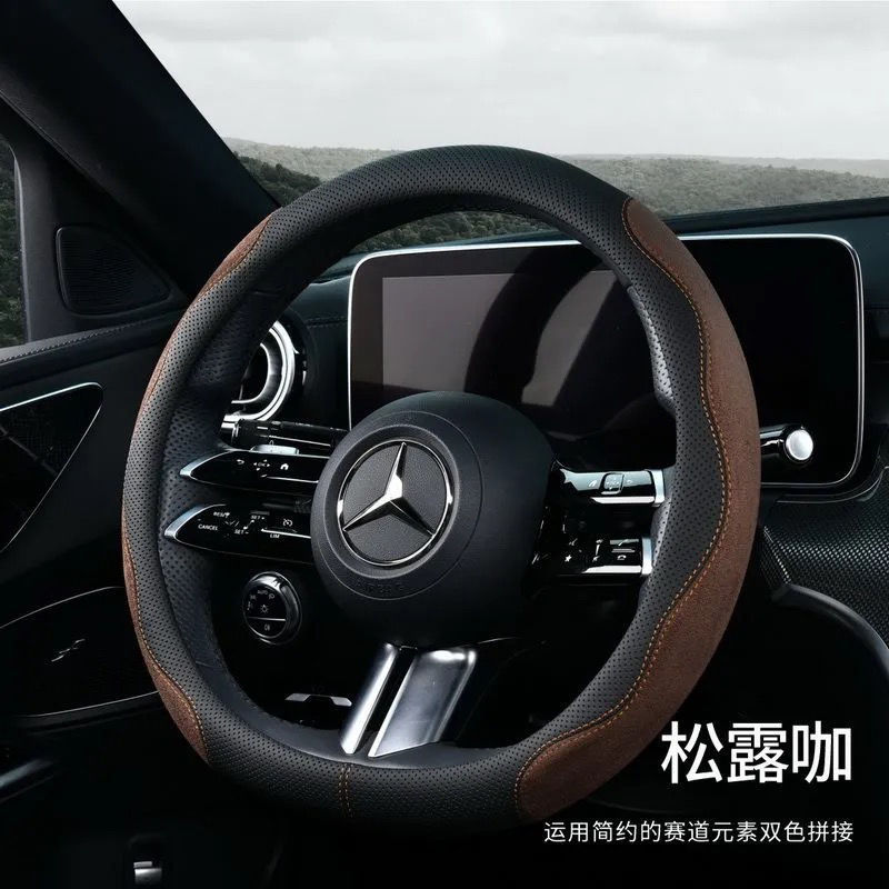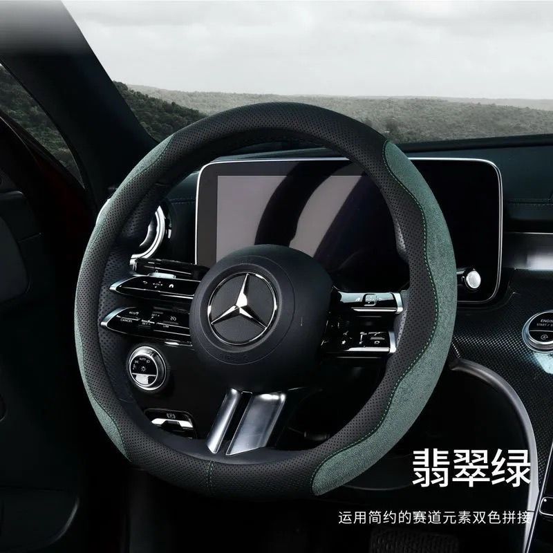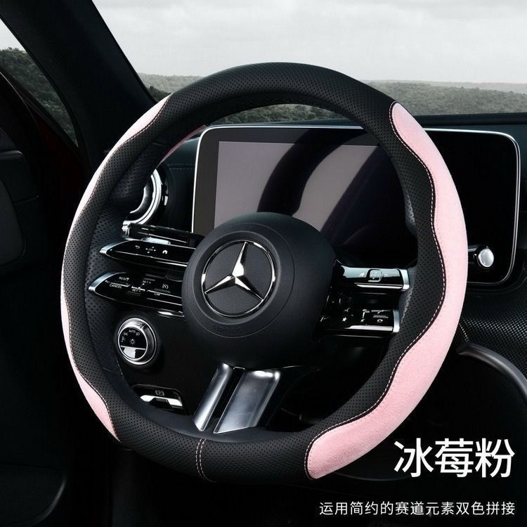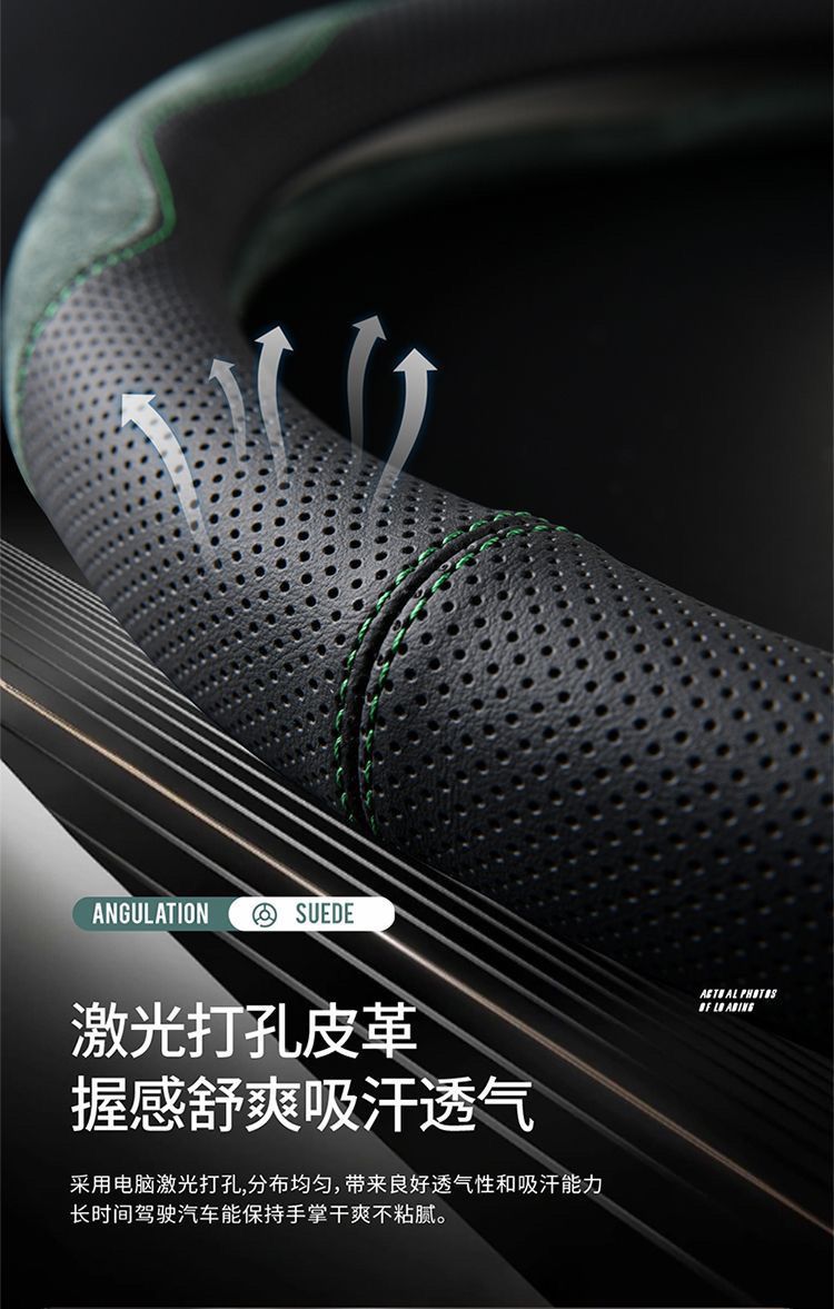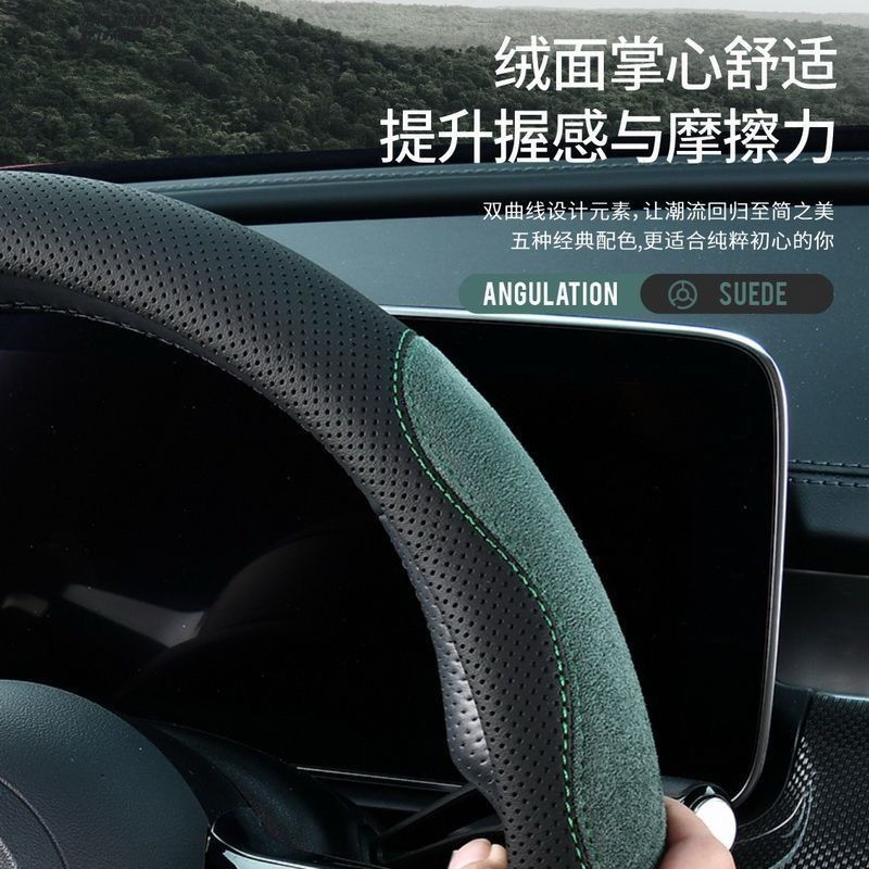 국경 간 가죽 스웨이드 자동차 스티어링 휠 커버 땀 흡수성 통기성 남성과 여성의 스포티 한 디자인 자동차 초박형 핸들 커버
