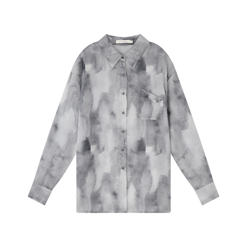 잉크 플라워 쉬폰 여성 셔츠 여성 2025 뉴 여름 얇은 탑 디자인 틈새 자외선 차단 셔츠스토어 가기