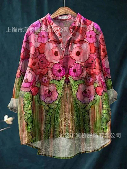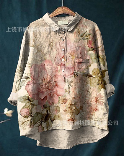 2025 폭발 국경 간 AliExpress 유럽과 미국 레저 숙녀 셔츠 3D 디지털 인쇄 하와이 편안한 맞춤 제작