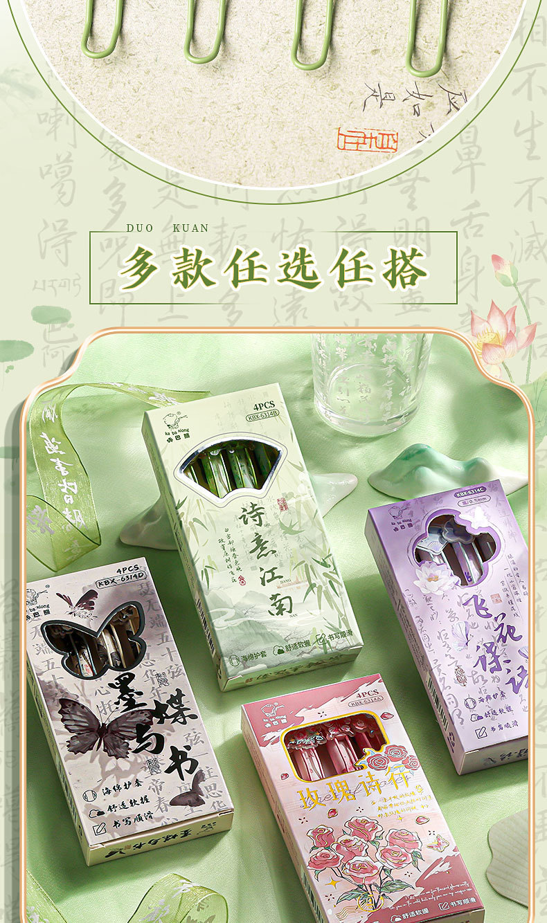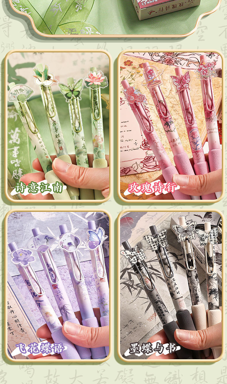 높은 Yan 가치 로즈 프레스 젤 펜 학생 빠른 건조 브러시 펜 세트 감소 무게 소프트 그립 0.5mm 블랙 리필