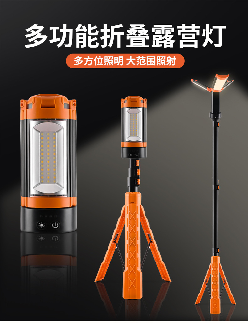국경 간 야외 다기능 접이식 캠핑 램프 3 잎 램프 고휘도 조명 충전식 고 내구성 작업 램프