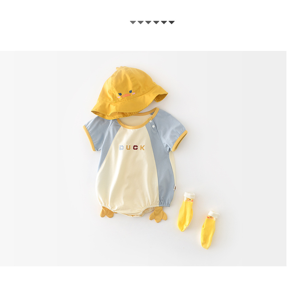 2025 년 여름 새로운 어린이 만화 오리 가방 방귀 하 옷 신생아 대비 짧은 소매 등반 52857