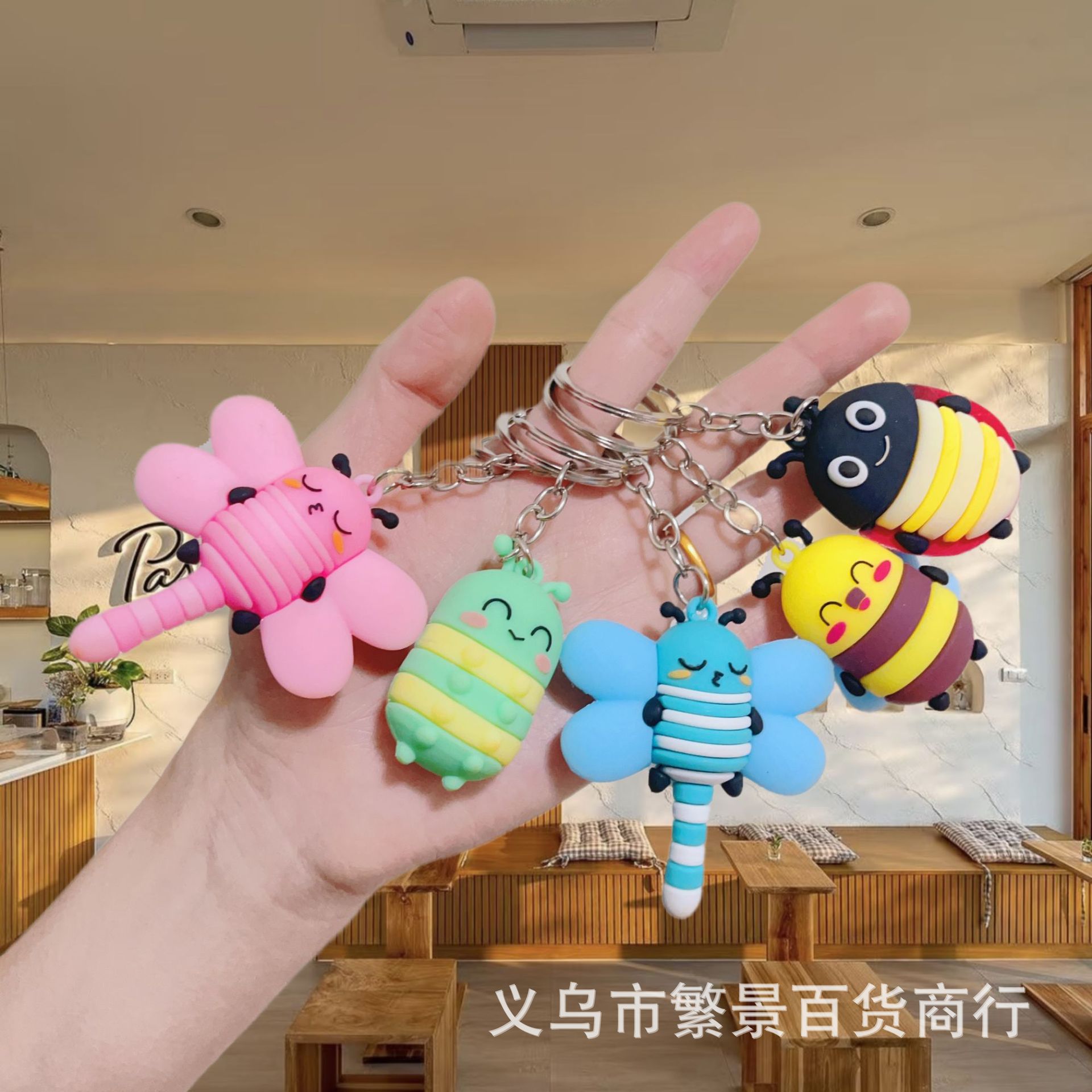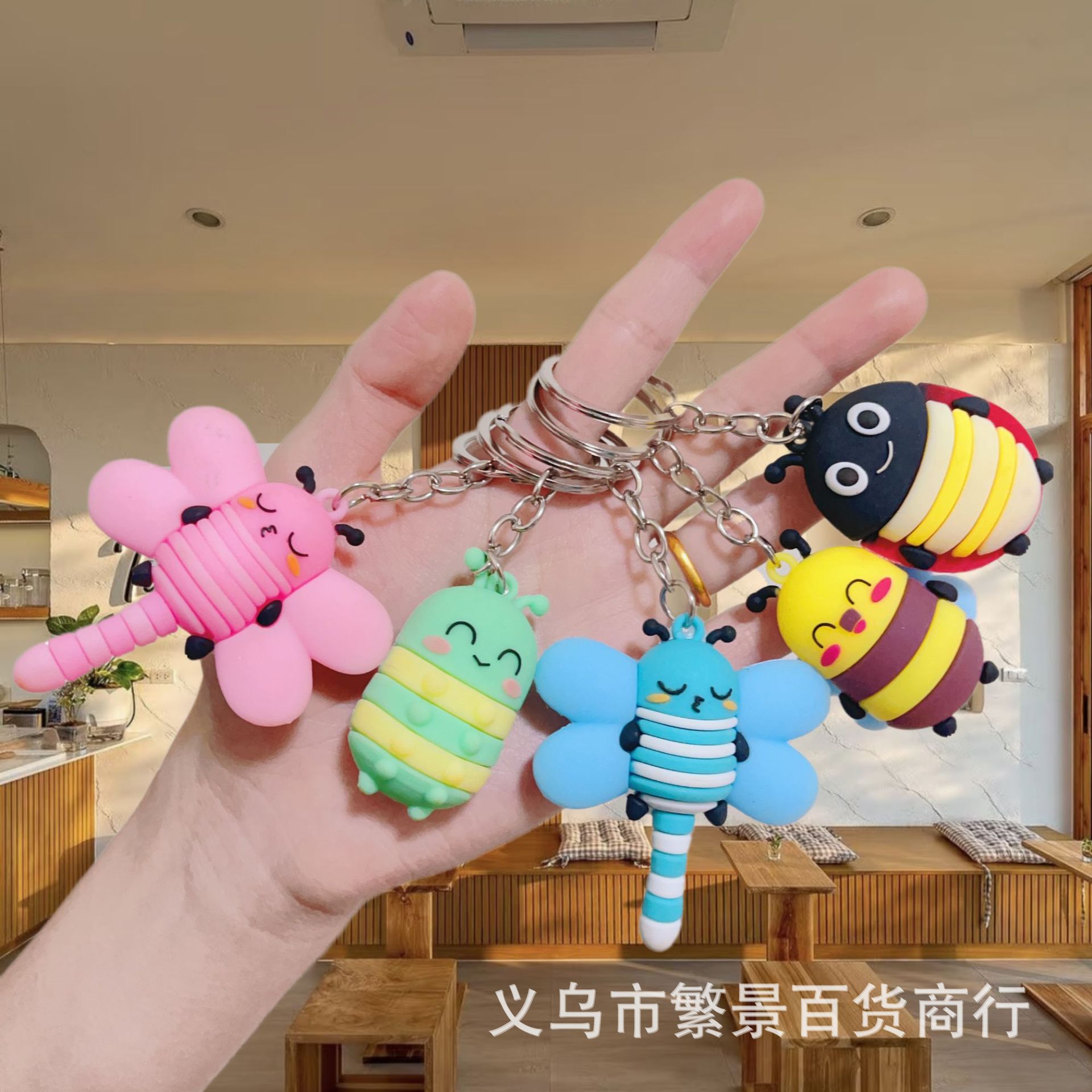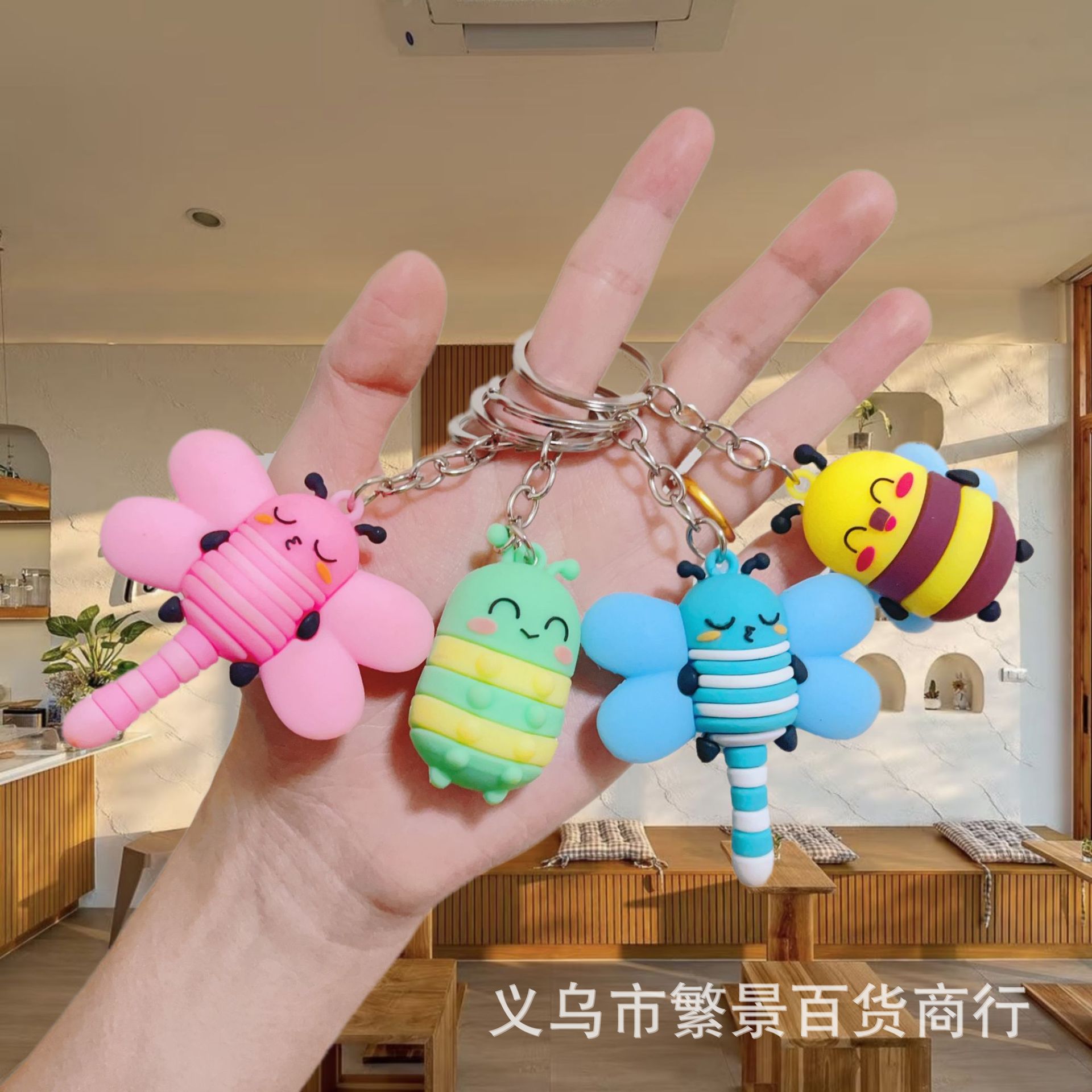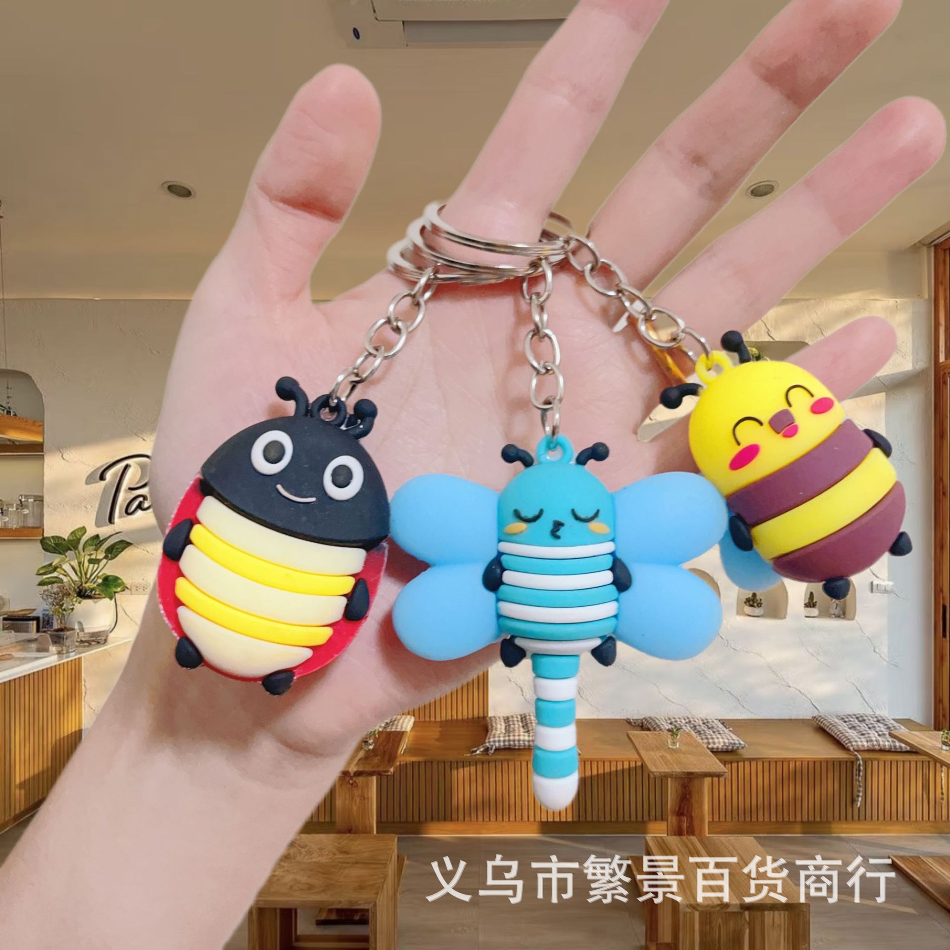 국경 새로운 만화 잠자리 꿀벌 키 체인 귀여운 애벌레 무당 인형 키 체인 펜던트스토어 가기