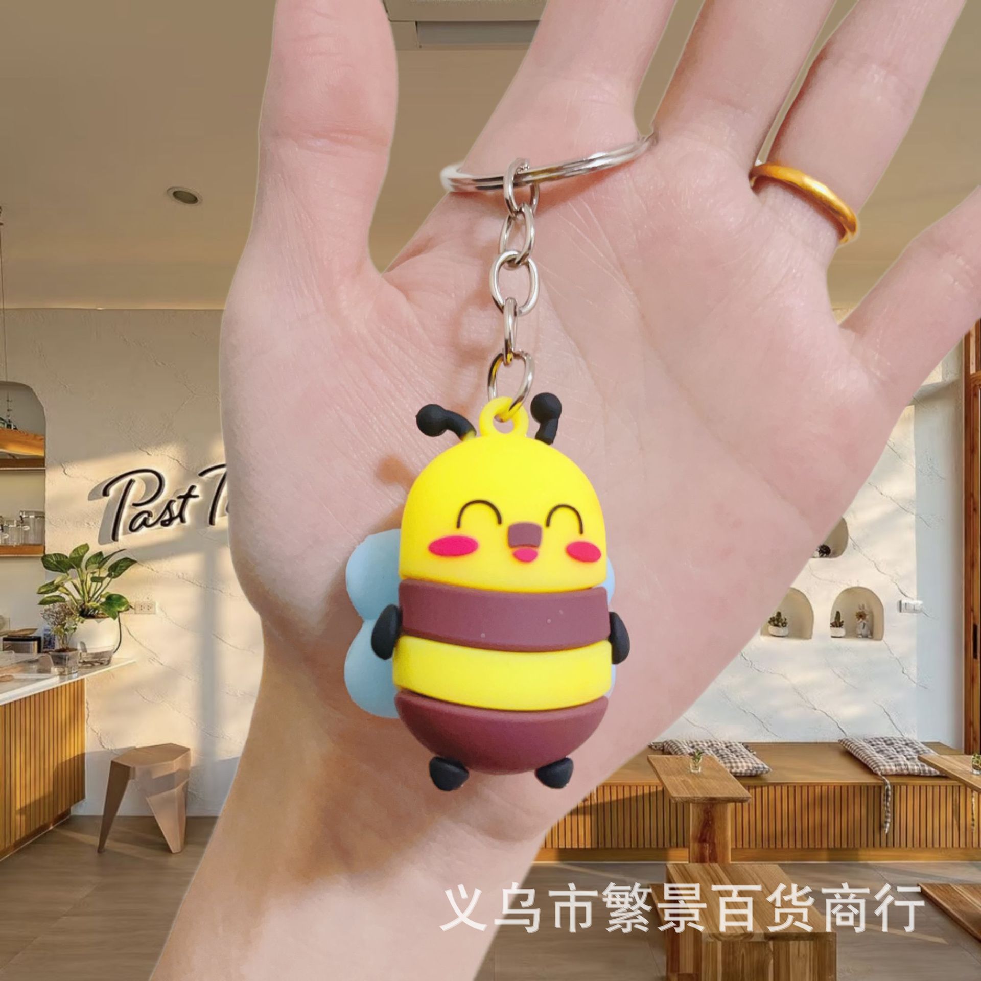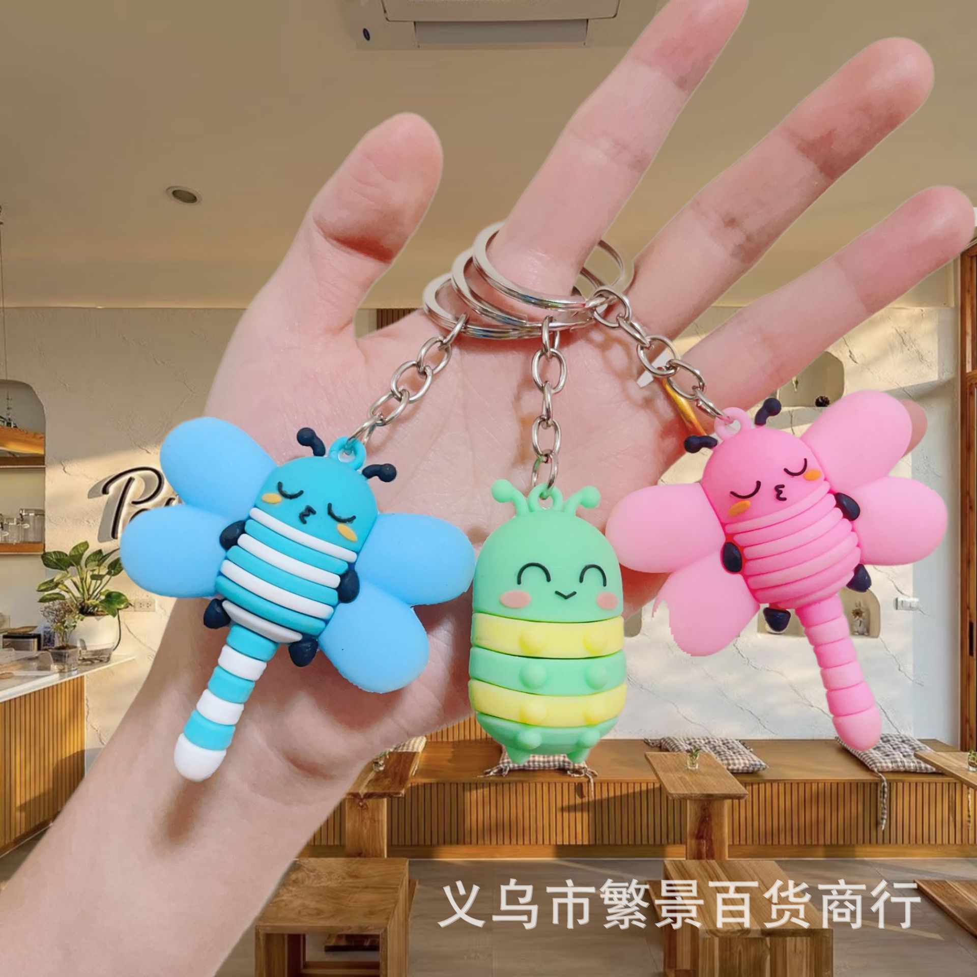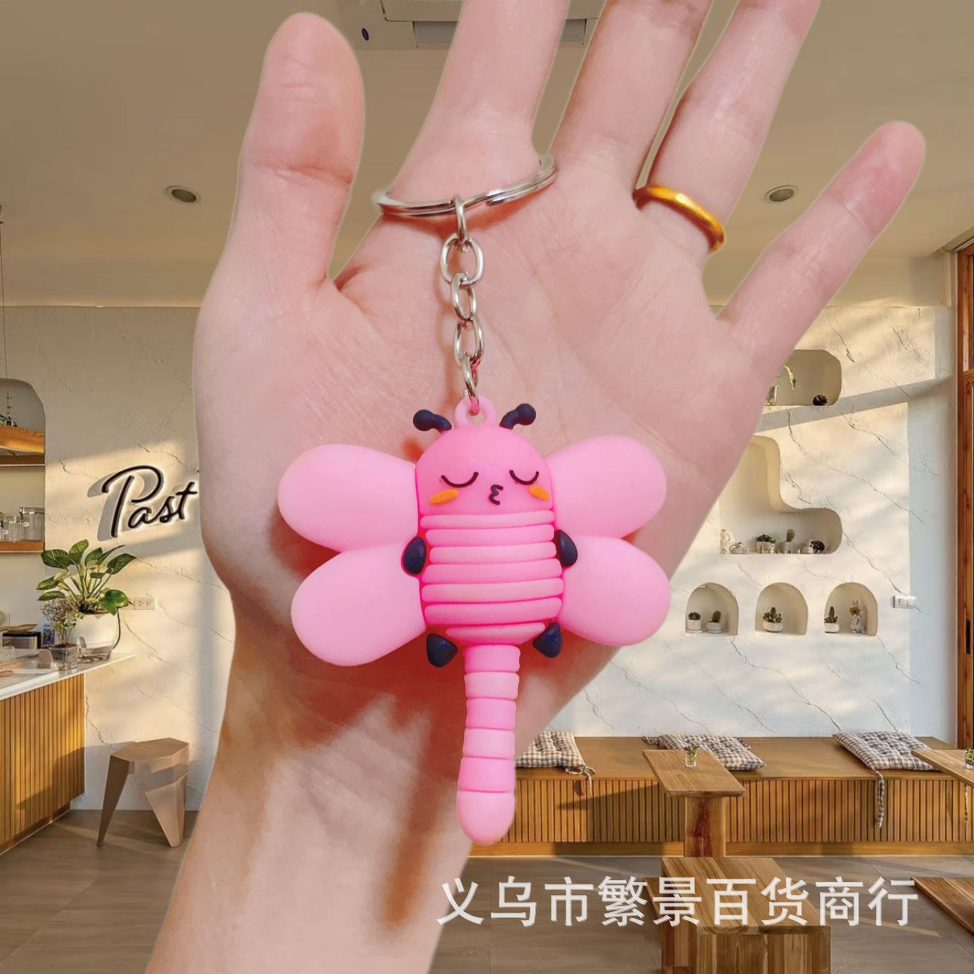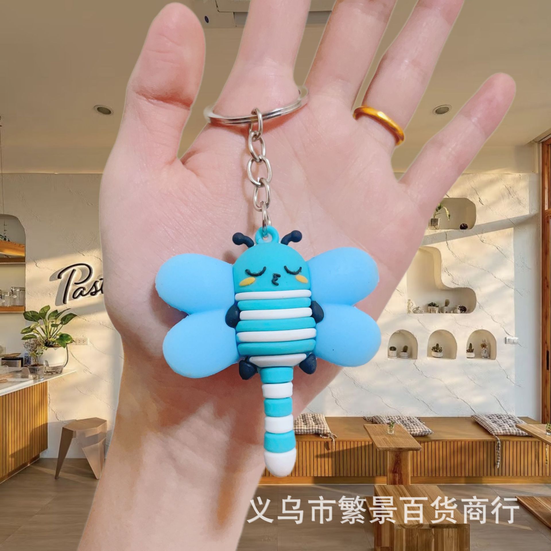 국경 새로운 만화 잠자리 꿀벌 키 체인 귀여운 애벌레 무당 인형 키 체인 펜던트스토어 가기