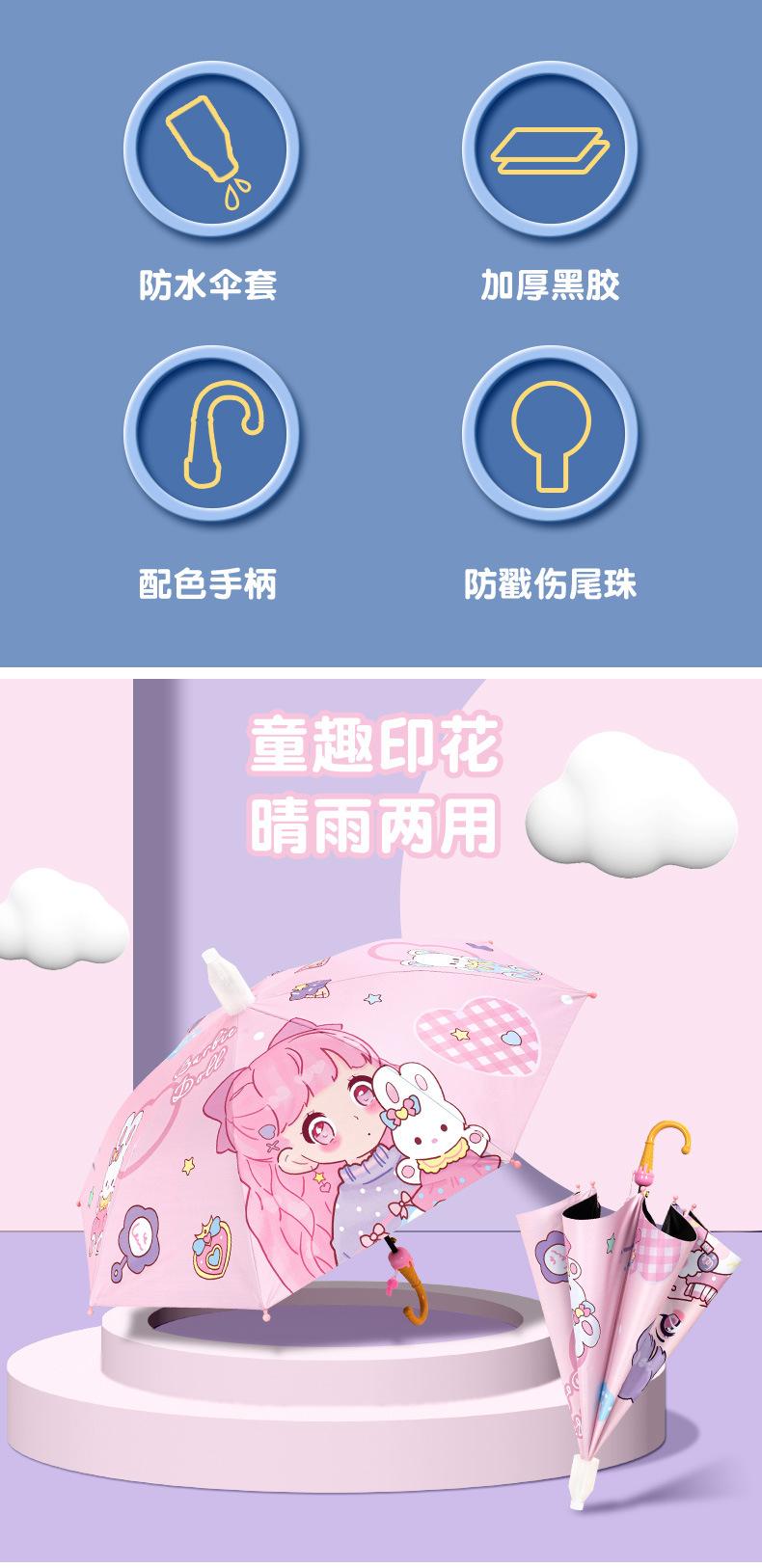 반올림 어린이 우산 여자 소년 초등학교 아기 유치원 긴 손잡이 우산 태양 우산