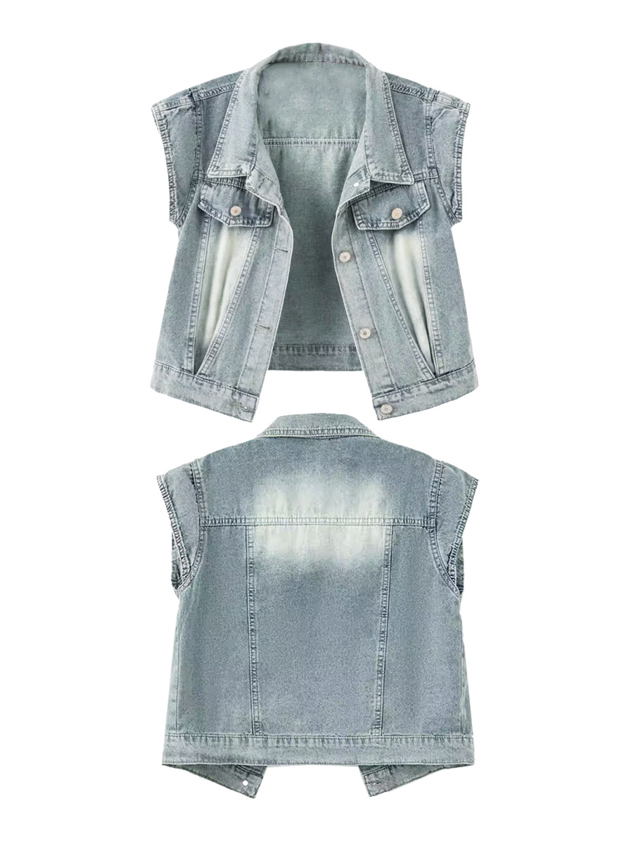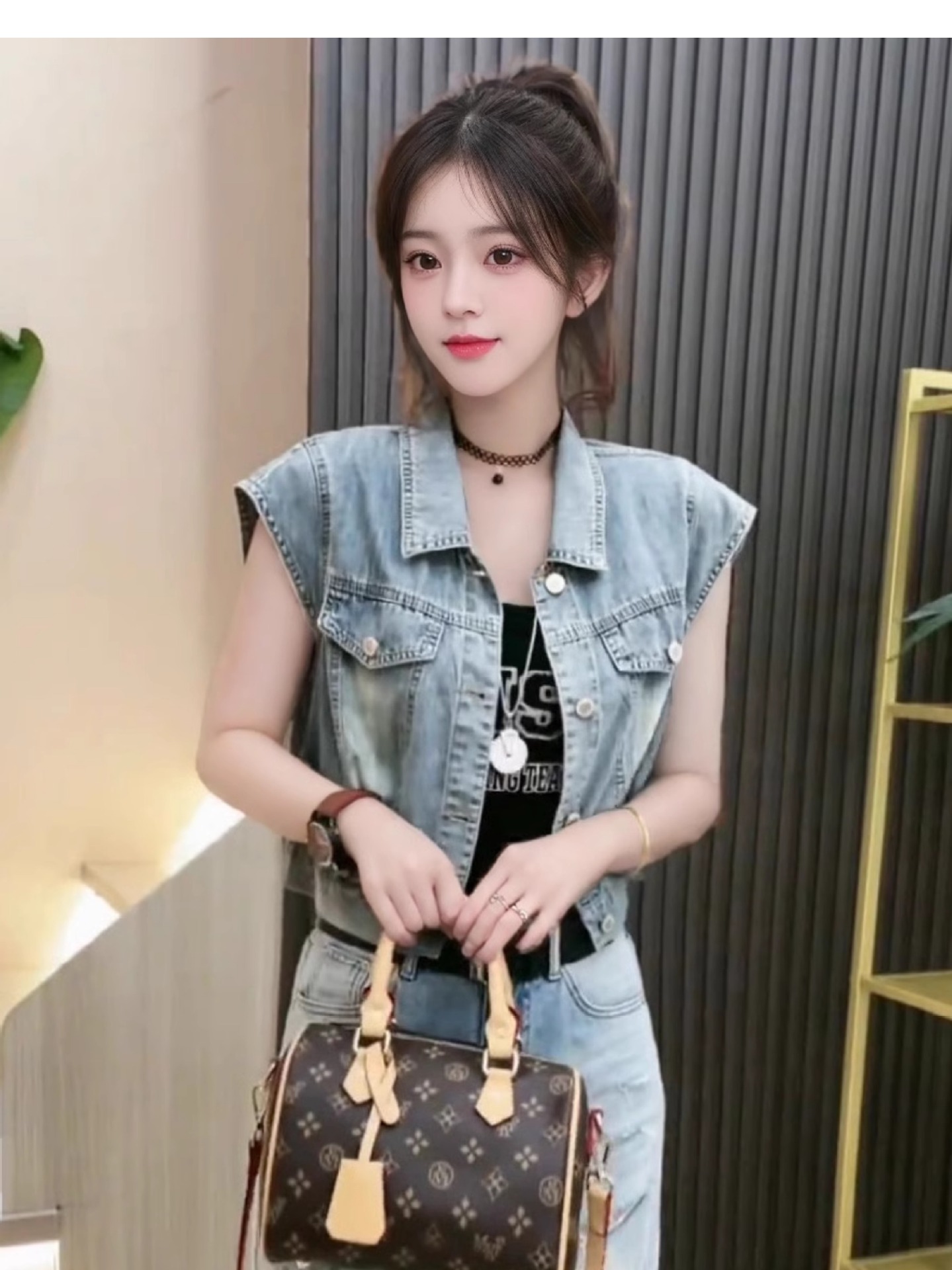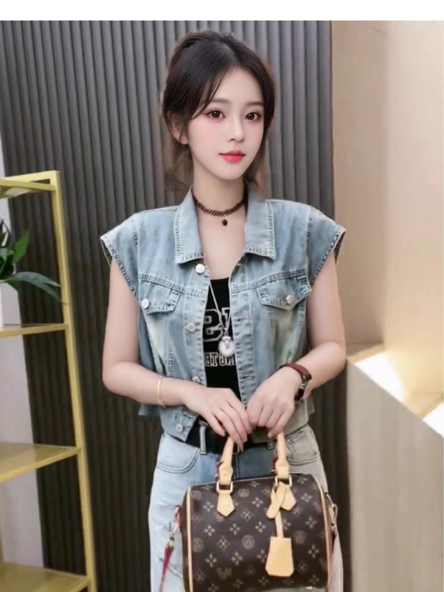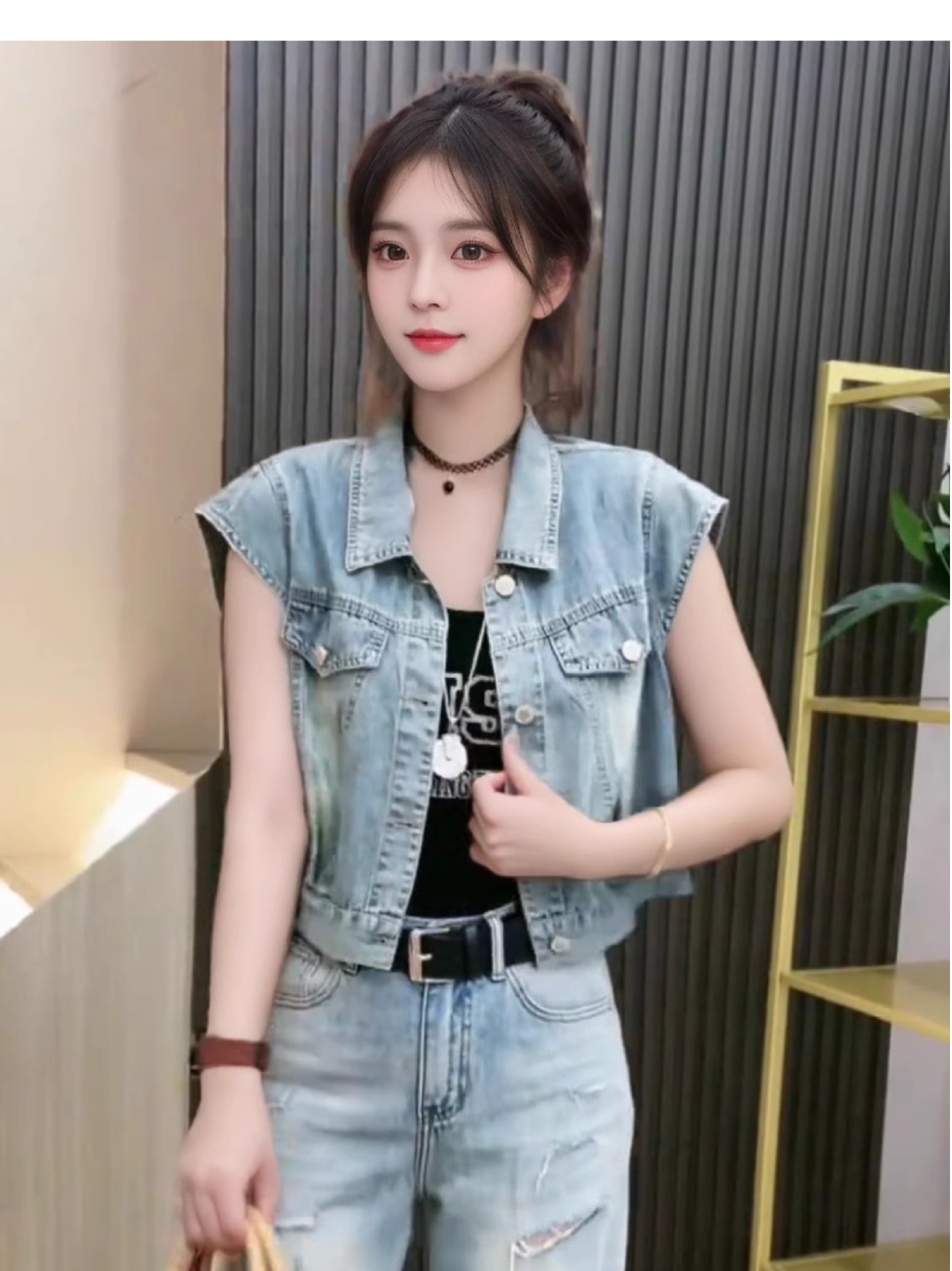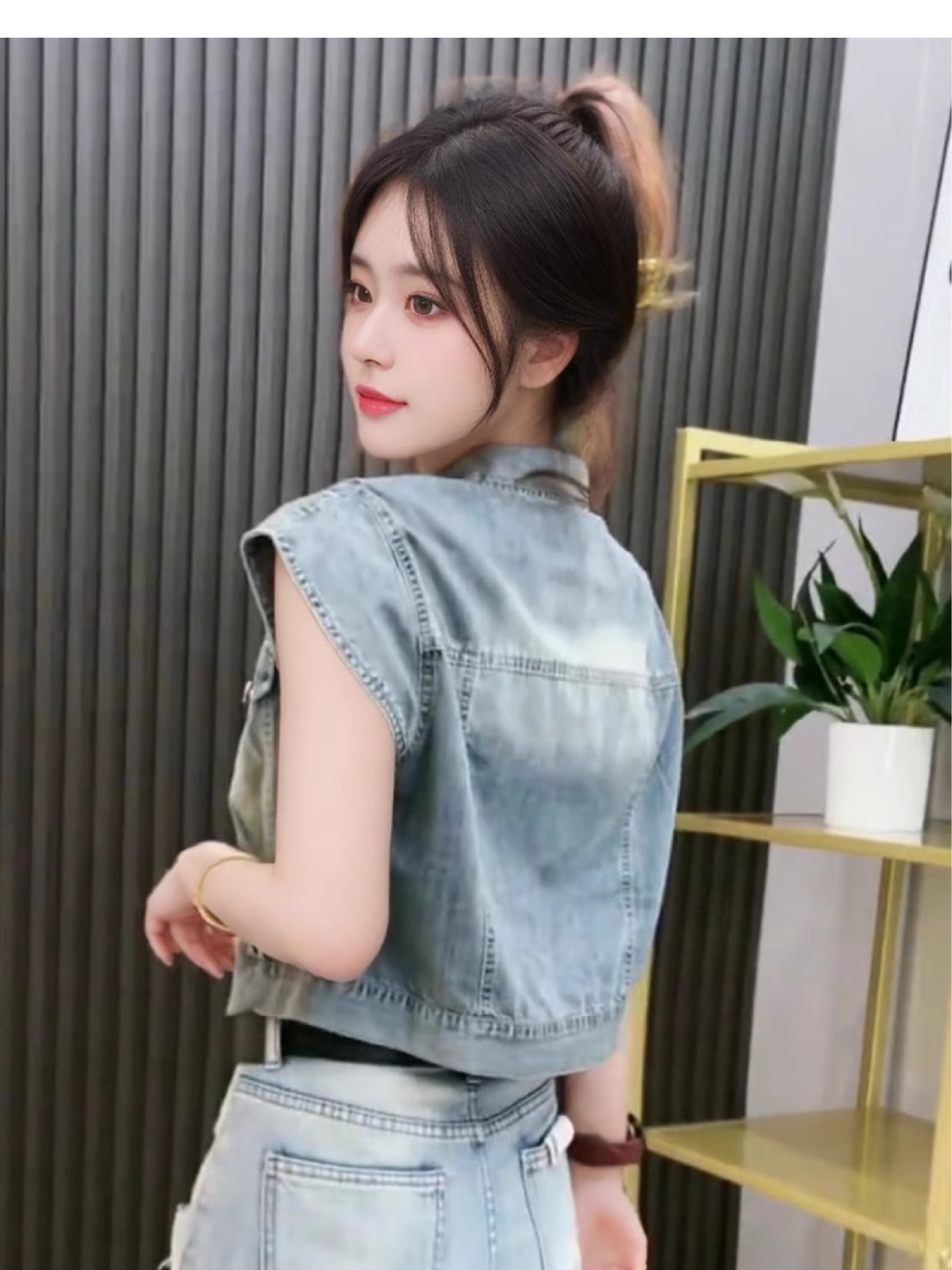 Xiaofei 슬리브 데님 조끼 여름 얇은 여성 외모 연령 감소 홍콩 스타일 레트로 민소매 웨이스트 코트 탑