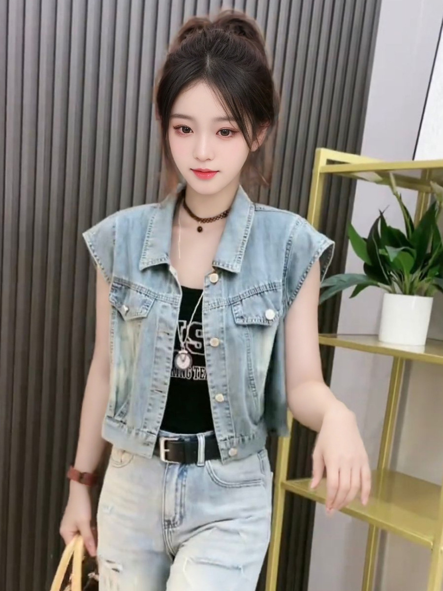 Xiaofei 슬리브 데님 조끼 여름 얇은 여성 외모 연령 감소 홍콩 스타일 레트로 민소매 웨이스트 코트 탑스토어 가기
