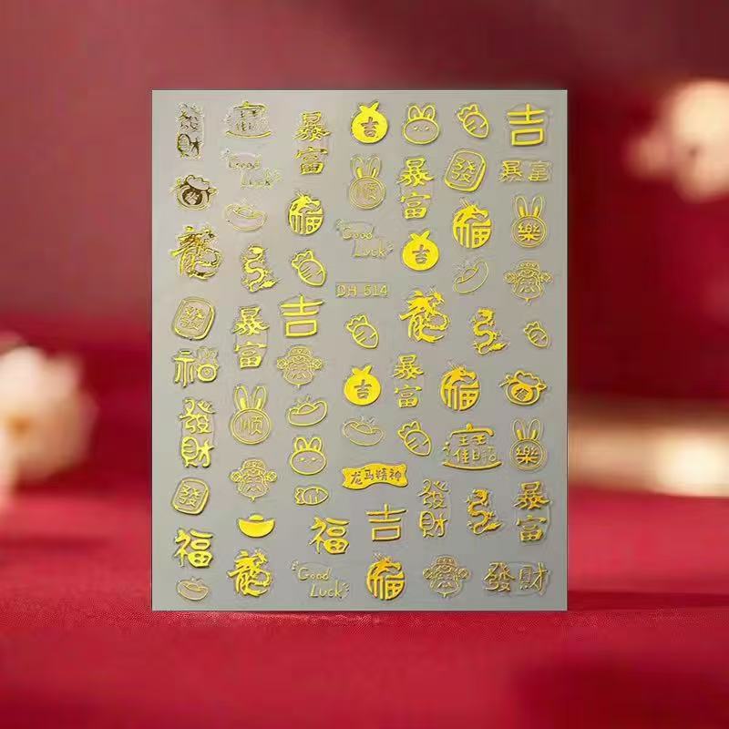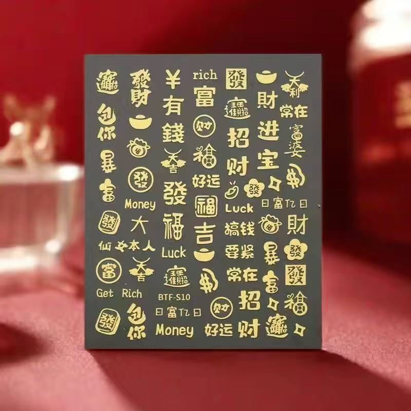 브론징 새해 네일 아트 스티커 리치 리치 신년 네일 아트 포춘 3D 골드 설날 쥬얼리 스티커