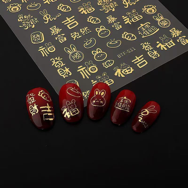브론징 새해 네일 아트 스티커 리치 리치 신년 네일 아트 포춘 3D 골드 설날 쥬얼리 스티커스토어 가기