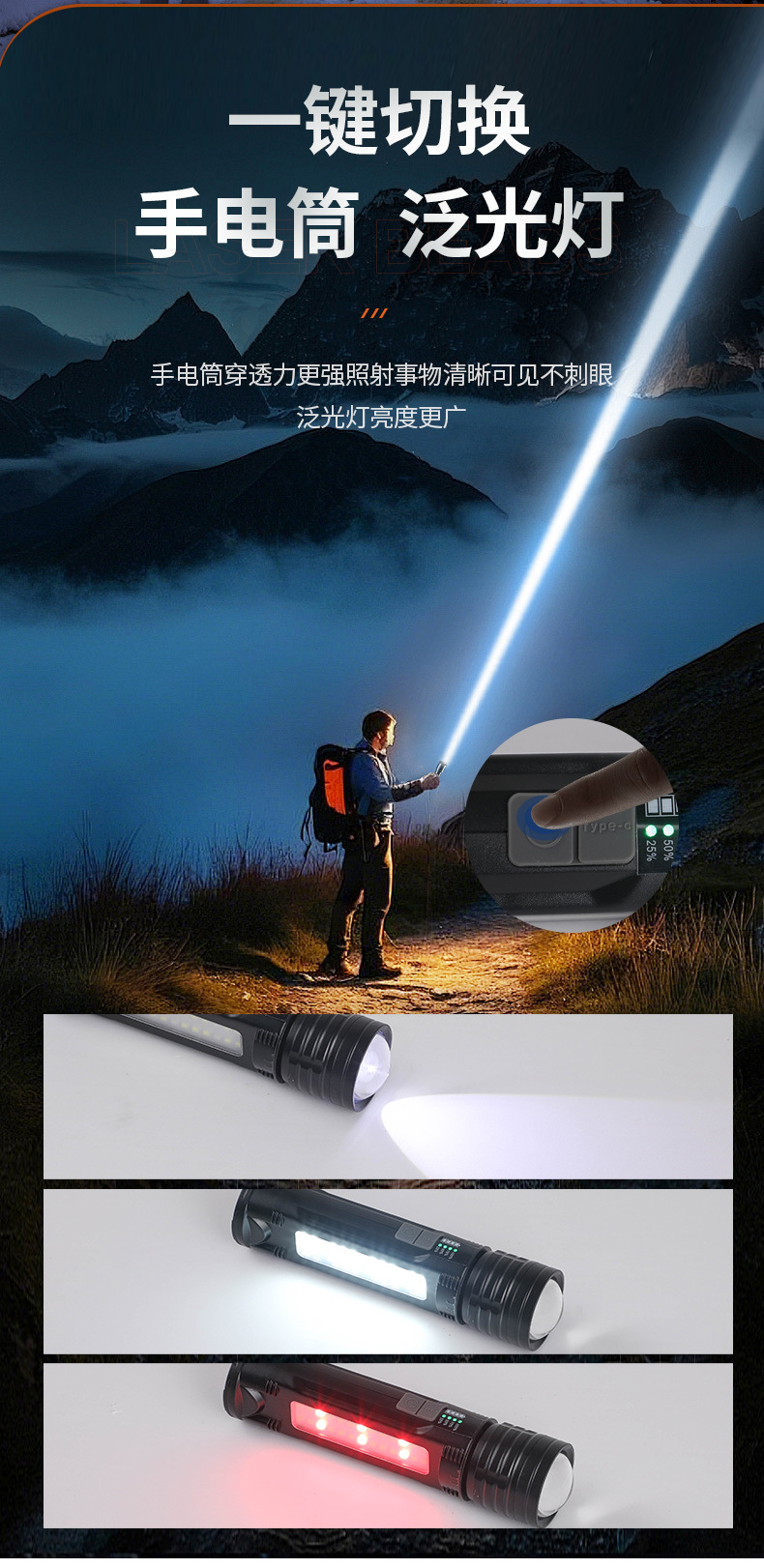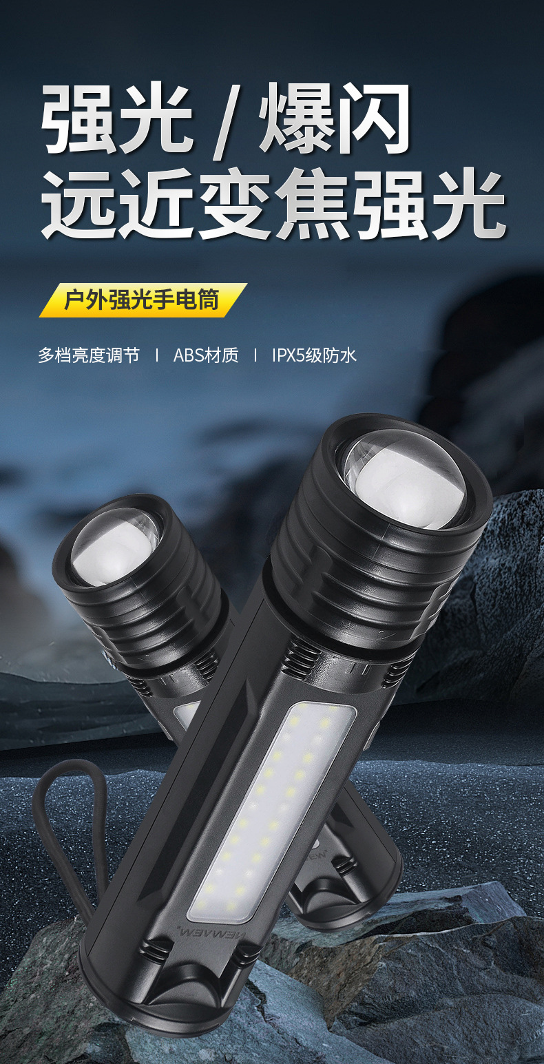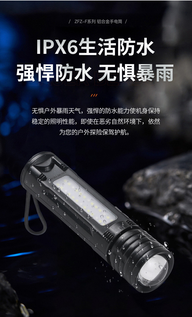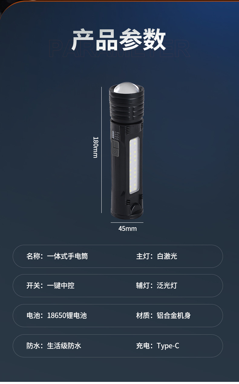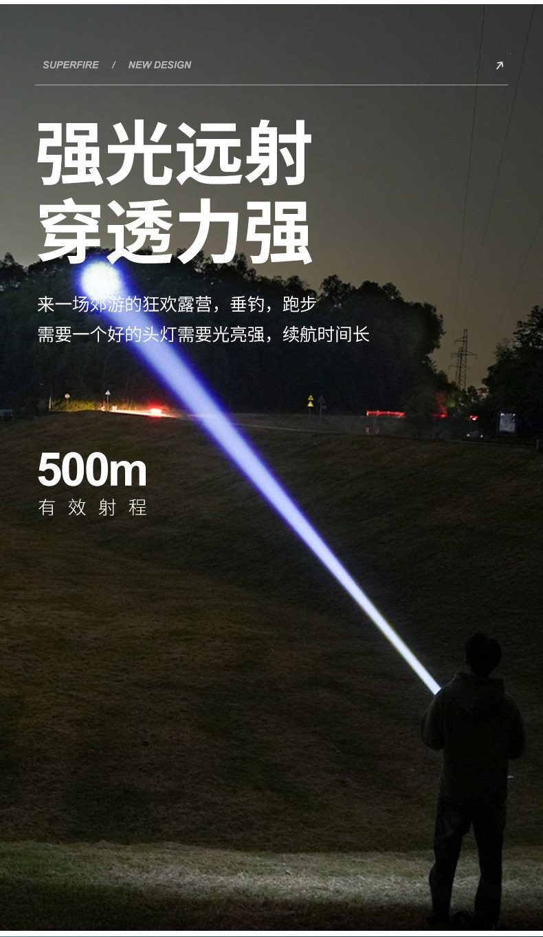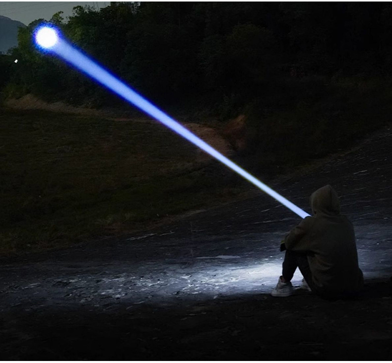 야외 모험을 위한 인기 있는 긴 배터리 수명 손전등, 매우 밝은 장거리 손전등, 휴대용 백색 레이저 충전식 조명 손전등