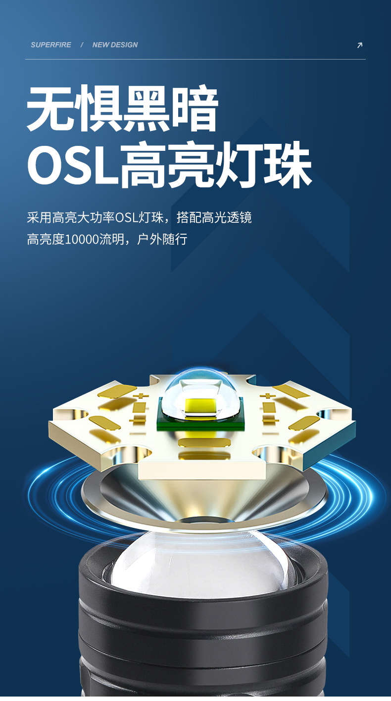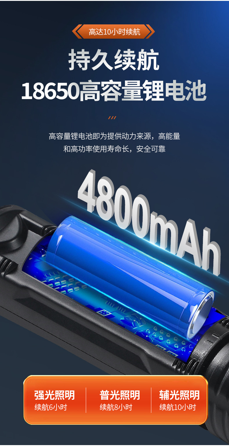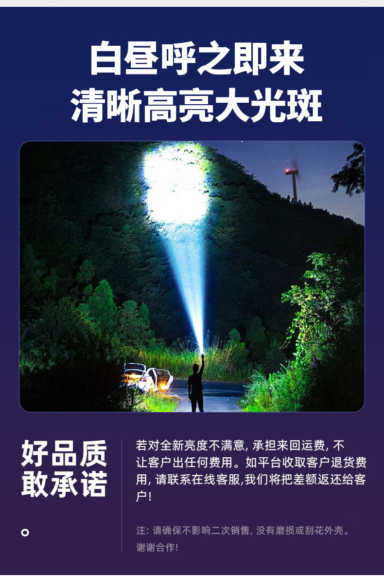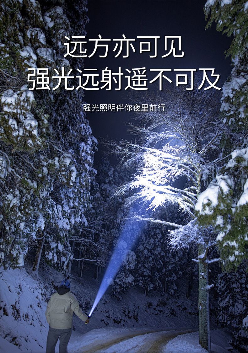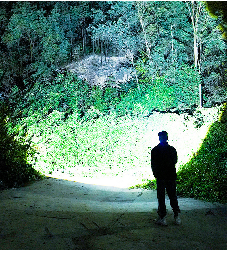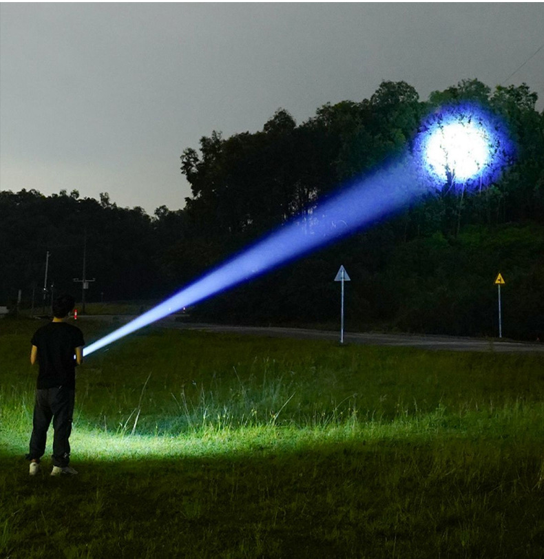 야외 모험을 위한 인기 있는 긴 배터리 수명 손전등, 매우 밝은 장거리 손전등, 휴대용 백색 레이저 충전식 조명 손전등스토어 가기