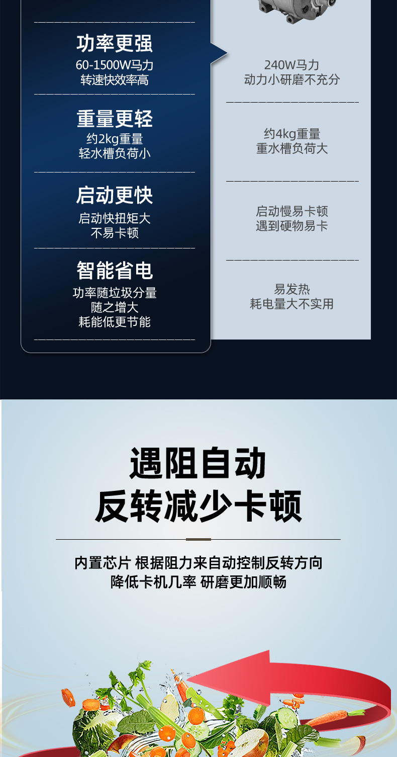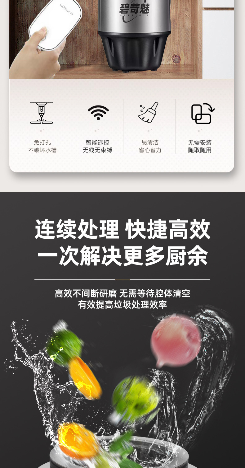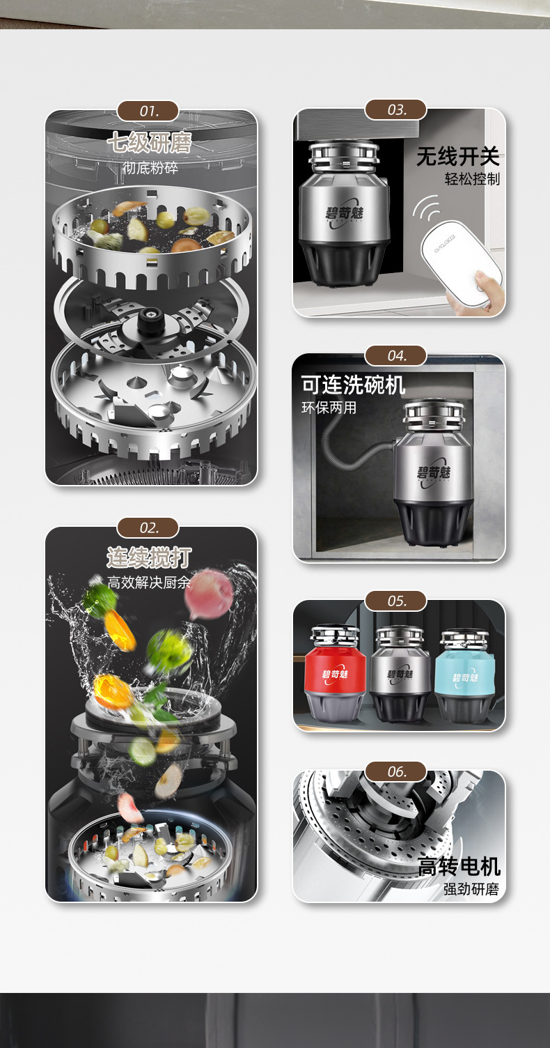 자전거 매력 대용량 가정용 주방 식품 폐기물 프로세서 싱크 하수도 분쇄기 도매스토어 가기