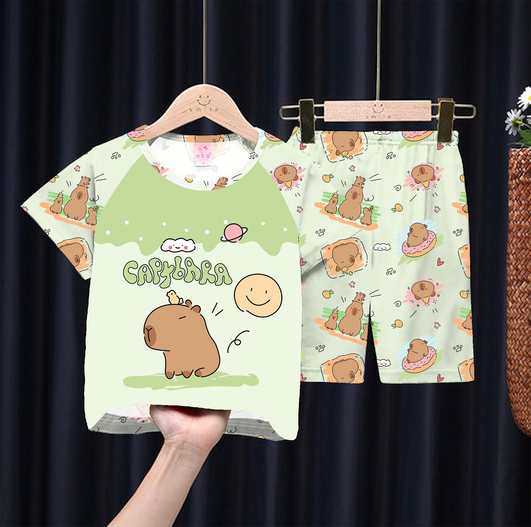 대외 무역 소년 잠옷 반팔 여름 스타일 소녀 아기 귀여운 얇은 여름 만화 정장 큰 어린이를위한 가정 옷스토어 가기