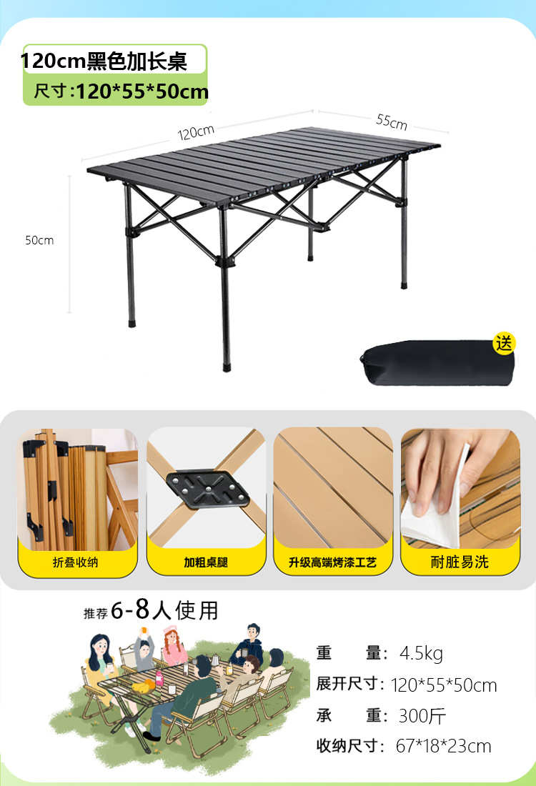 야외 접이식 테이블, 피크닉 테이블 및 의자 세트, 휴대용 계란말이 테이블, 바베큐 긴 테이블, 캠핑 장비 세트스토어 가기