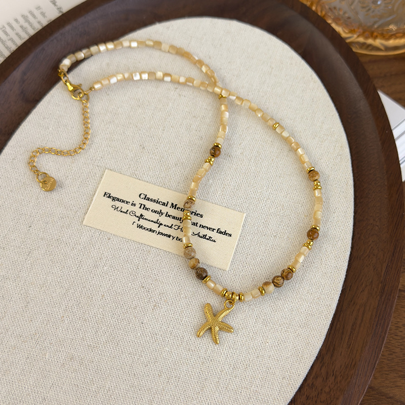 새로운 중국 골동품 스타일 매칭 액세서리 다채로운 쉘 원통형 돌 불가사리 펜던트 목걸이 패션 새로운 짧은 목걸이